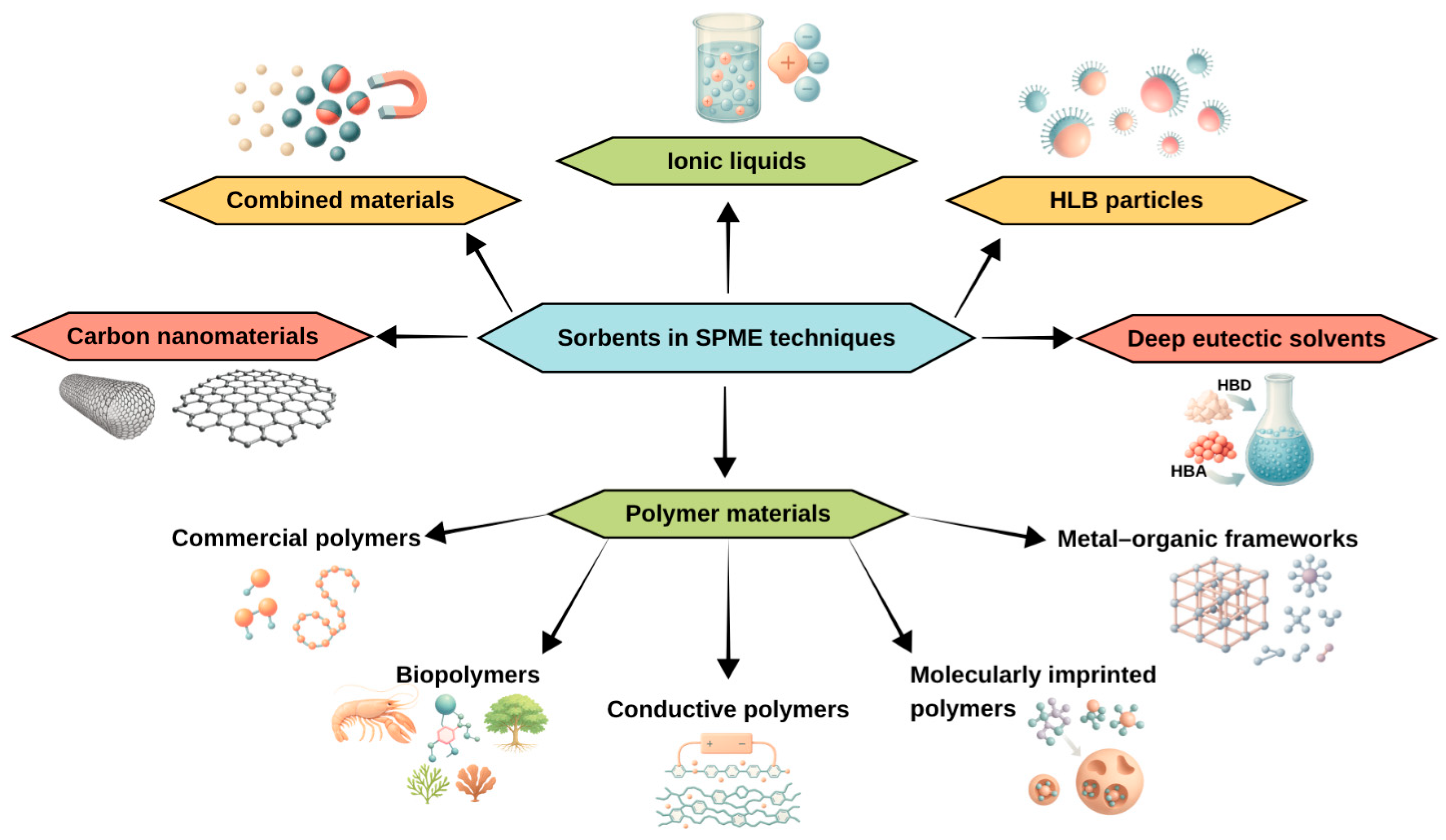 - Commercial polymers, including polydimethylsiloxane (PDMS), a mixture of polydimethylsiloxane and divinylbenzene (PDMS/DVB), a mixture of polydimethylsiloxane and carboxyl (PDMS/CAR), polyacrylonitrile (PAN) [35].