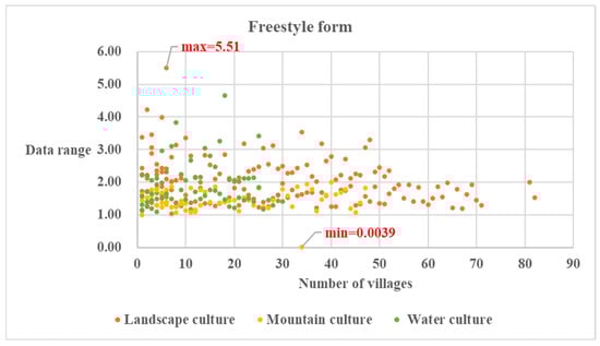 - Freestyle form villages can be divided evenly into finger form and cluster form at the digital level. The S is complex, the ϴ is larger, and the S2 is the largest. This indicates that village spatial morphology is flexible, the external expansion trend is most obvious, and public space fragmentation is relatively high. This further reflects the village’s spatial resilience within natural ecology, deeply embedded with cultural intelligence. Under the influence of a changeable landscape environment, it anchors a dynamic flexibility space within the natural culture context. The highest proportion of finger form villages at the digital level is concentrated in the most complicated landscape conditions. This confirms the metamodern hypothesis of positive coupling between the mathematical complexity of village space and cultural complexity.
