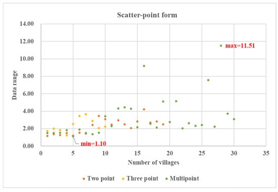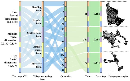 S is proportional to the complexity of the village. The larger the numerical value of S, the greater the level of the village boundary, and the more complicated the boundary shape (Table 3).