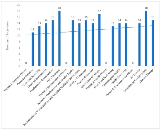The data from the two interview rounds were coded and analyzed both independently and comparatively. Thematic comparisons were made between the “during COVID-19” and “post-COVID-19” periods by tracking shifts in code frequency, content emphasis, and participant sentiment over time. This comparative approach enabled the identification of emerging, regressing, or evolving themes. It provided insights into the dynamic nature of SDG implementation trajectories in the Saudi context. The analysis captured how stakeholder perceptions and sectoral priorities shifted between the two phases of the pandemic.