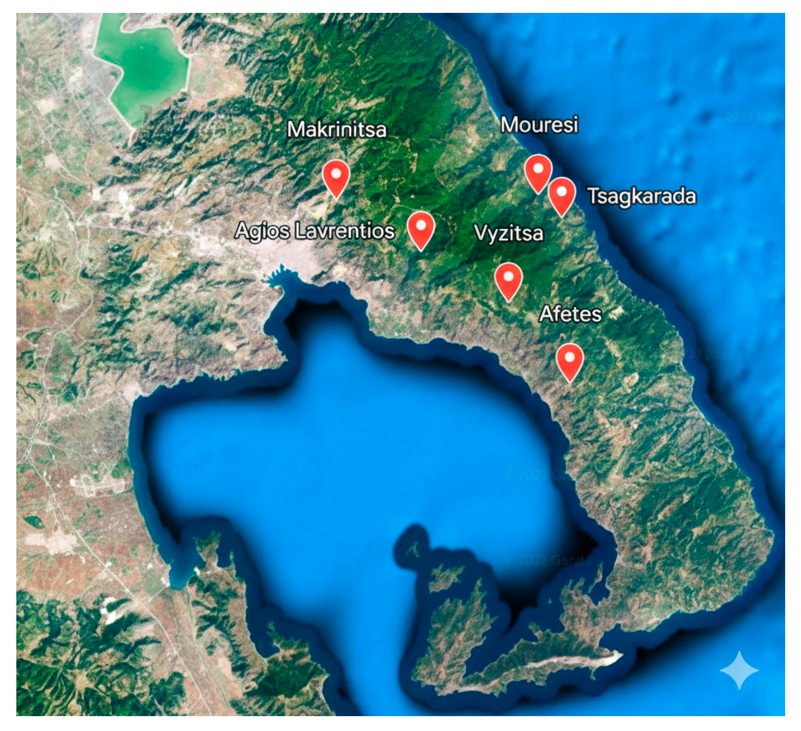 The study focuses on six Greek traditional settlements in Mount Pelion in Central Greece; Agios Lavrentios, Afetes, Makrinitsa, Mouresi, Portaria, Tsagkarada (see