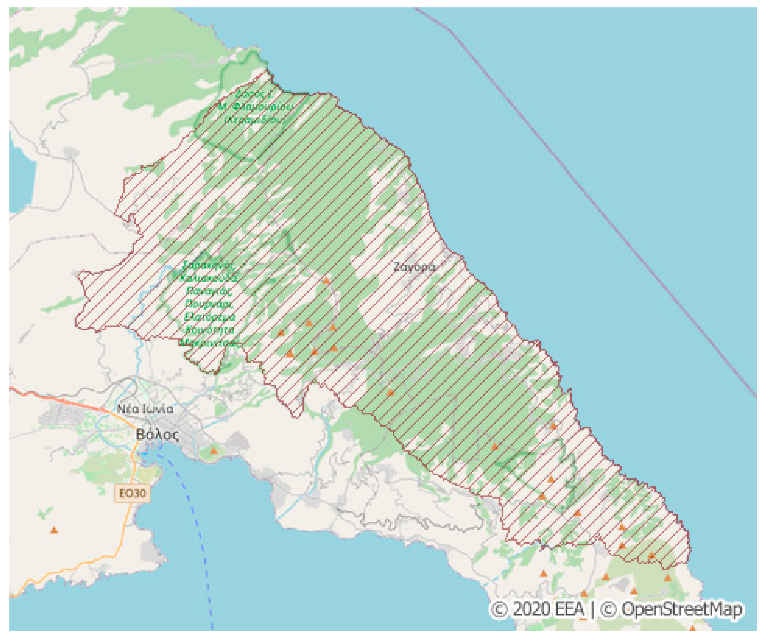 Both natural and built environment in the area fall under separate conservation policies with specific rules and regulations, despite some initiatives for an inclusive conservation strategy. A large part of Pelion Mountain has been included in Natura Network1 and characterized as a Site of Community Importance (SCI) (Natura 2000) targeting essentially at the protection of the natural assets and species in the area (see