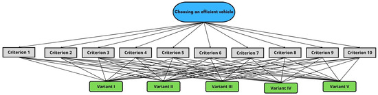 | Criterion g1—vehicle purchase cost [PLN] | 1.00 | 3.00 | 5.00 | 7.00 | 7.00 | 7.00 | 5.00 | 5.00 | 5.00 | 5.00 |