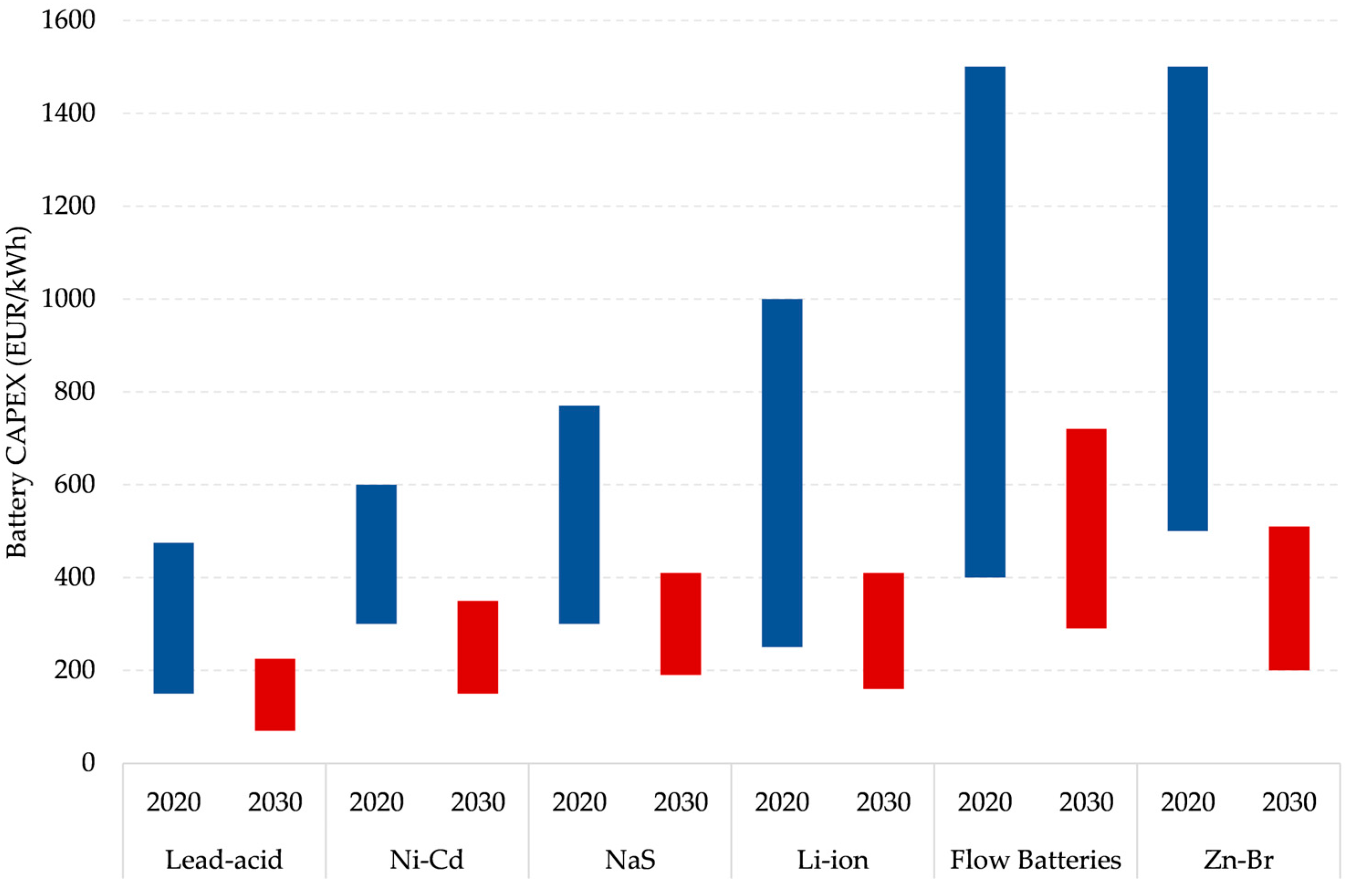 | Lead–Acid | Ni-Cd | NaS | Li-Ion | VRB | Zn-Br | |