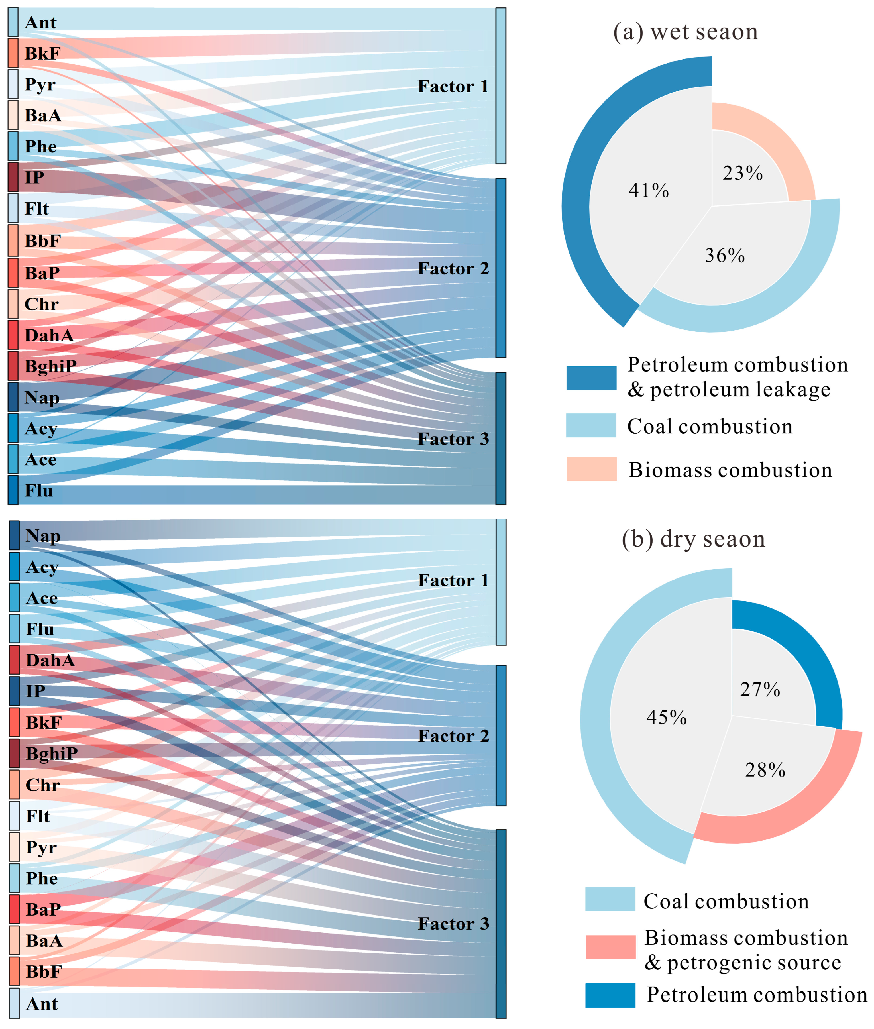 3.2. Compositions and Source Apportionment of PAHs