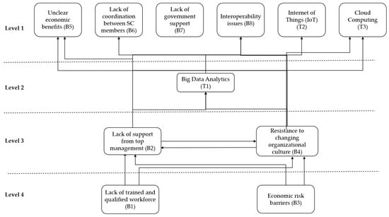 This study expanded the exploratory work of Piovesan et al. [34], who investigated aspects related to barriers and base technologies. We present a new theoretical and conceptual approach that draws on a meta-theory combining DCT, SCT, organisational culture, and agency theories. Additionally, this study employs a multicriteria analysis method. ISM analysis is conducted because it offers a structured, hierarchical examination of the barriers and foundational technologies associated with digital transformation. Finally, previous research is expanded upon by offering a novel framework for I4.0 adoption and further exploring the barriers to DT.