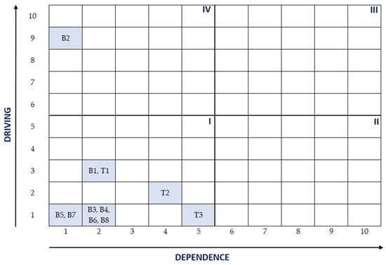 The MICMAC analysis classifies factors into four clusters, presented as follows [28]: