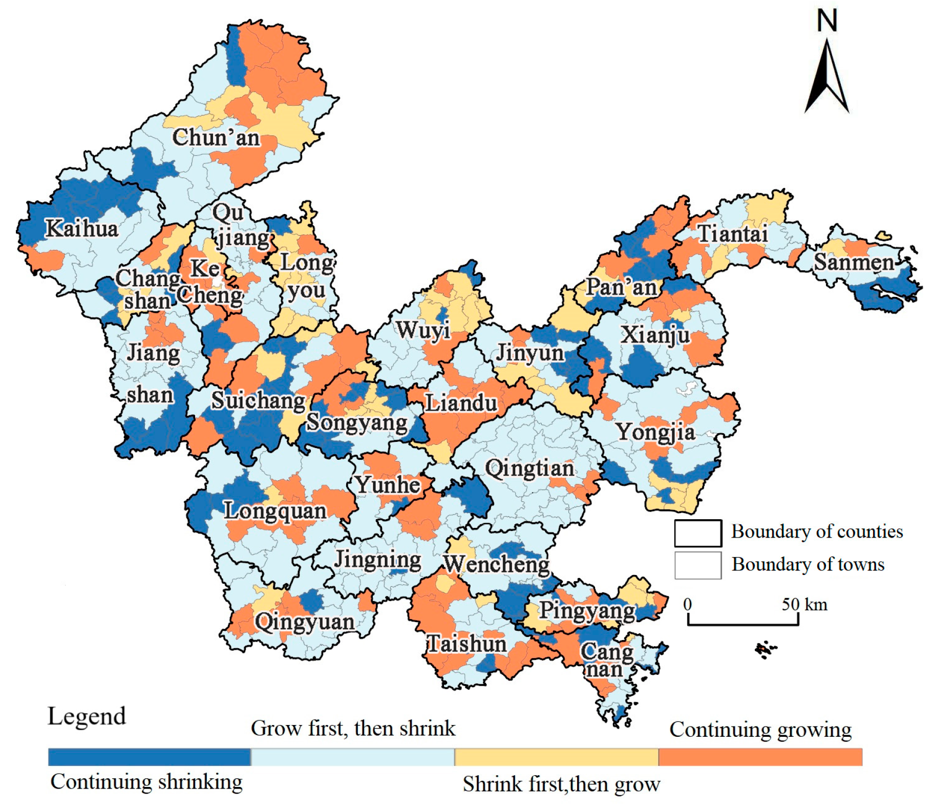 3. Spatiotemporal Patterns of Small-Town Shrinkage in the 26 Mountainous Counties of Zhejiang Province