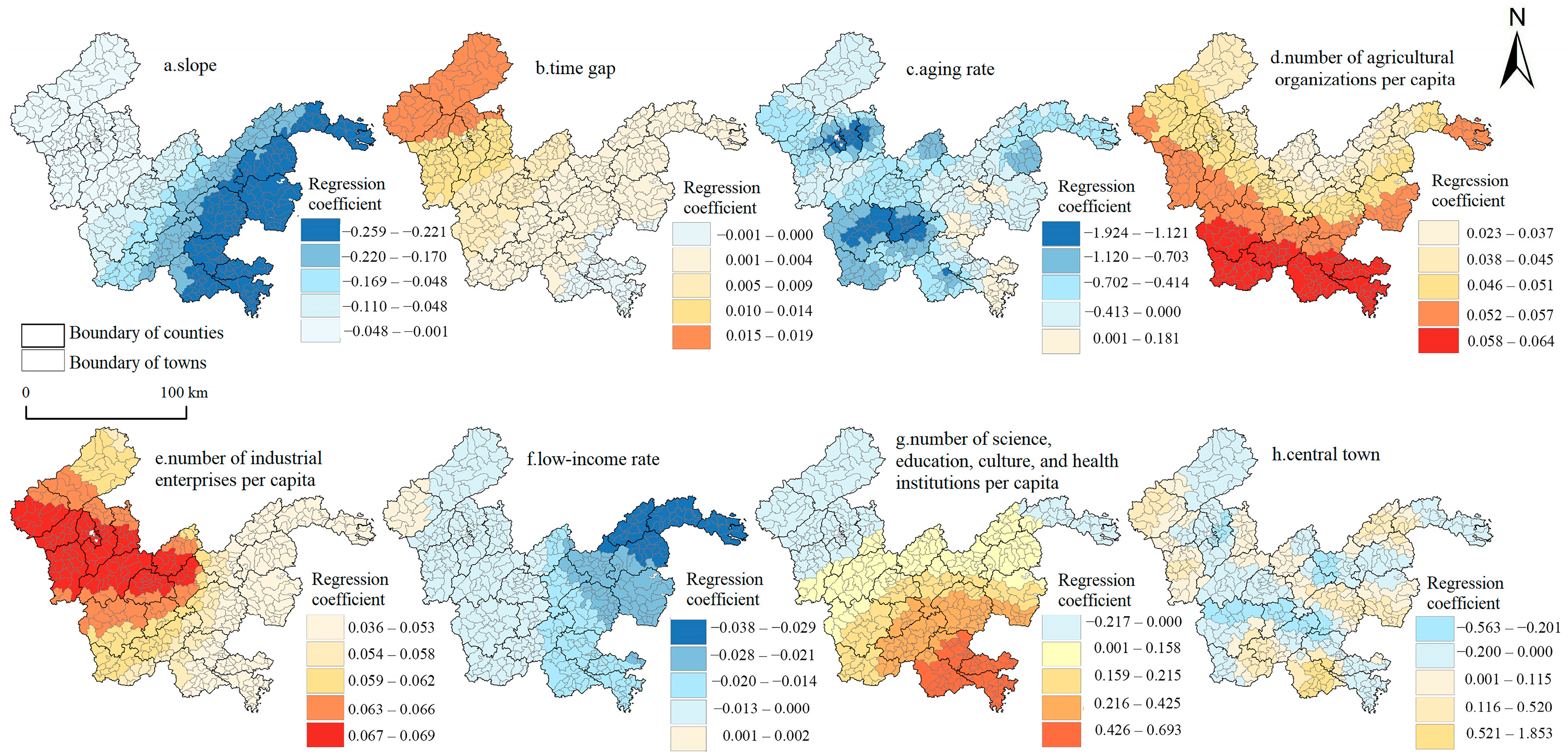 - The shrinkage pattern of small towns in the 26 mountainous counties of Zhejiang is influenced by multiple factors. The rugged and mountainous natural environment acts as a geographic constraint, while urbanization development and industrial restructuring accelerate the outflow of young and middle-aged labor and intensify aging, thereby restricting the development of specialty agriculture and green manufacturing. Improvements in transportation location conditions and social public services partially alleviate shrinkage pressures. Eco-prioritized protective policies also influence the future development paths of mountainous small towns, becoming an external force that cannot be ignored in driving shrinkage. The spatial heterogeneity of these factors is pronounced; whether the effects are positive or negative, the small towns most affected are those in rugged areas and on the peripheries of counties and regions.