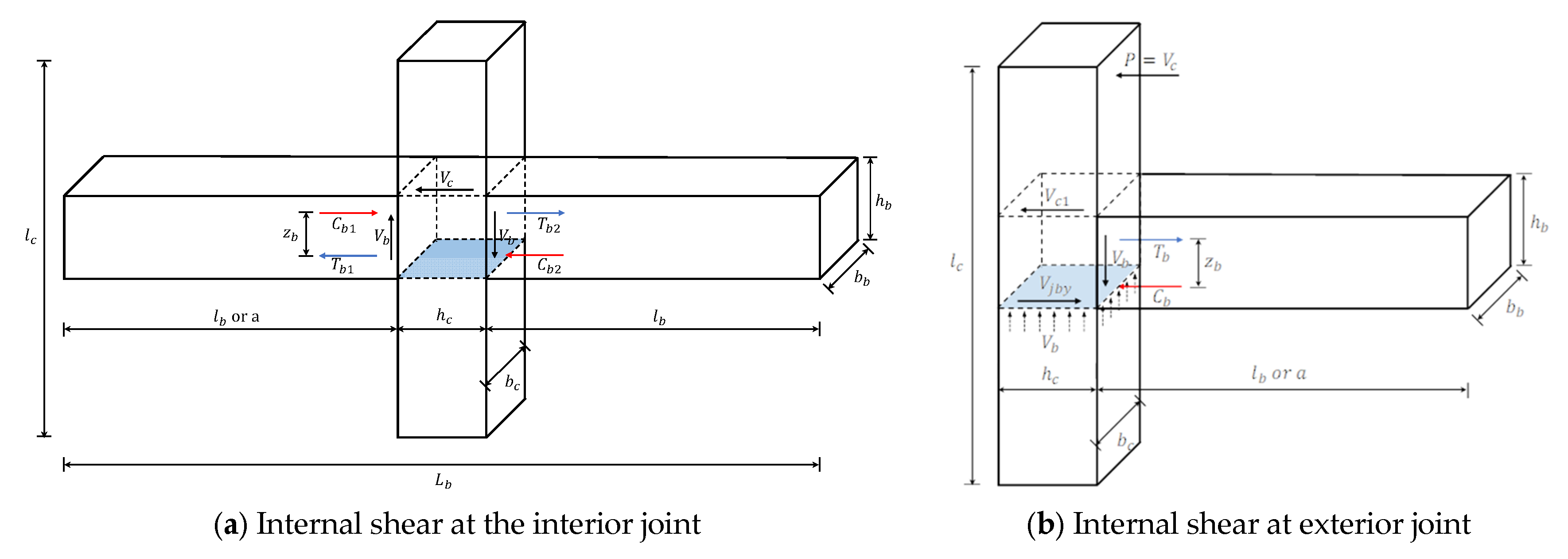 V j b = ( l c z b 1 ) V b L b l c h c z b V b ( l c z b 1 ) V b 2 l b + h c 2 l c for   internal   joints for   external   joints
