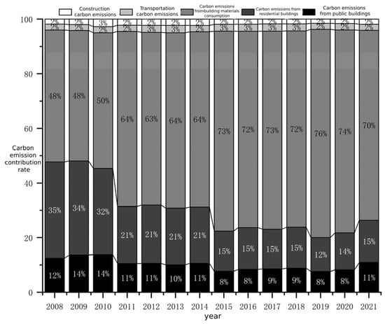 There are numerous researchers in the field of building energy and CE analysis. In terms of analyzing the influencing factors of CE, the main research methods include the STIRPAT model, the LEAP model, the LMDI decomposition method, the Environmental Kuznets Curve (EKC) theory, and the Tapio decoupling model. For example, Liu Yueli et al. [7] utilized the LMDI model to summarize the influencing factors of CE growth in the public service building industry of China’s tertiary industry and proposed feasible control strategies; Ma et al. [8] applied the STIRPAT model to evaluate the driving factors of CE from Chinese public buildings from 2000 to 2015, which provides an impetus for the development of China’s CE control strategy for public buildings. Based on the STIRPAT model and the EKC hypothesis, Lu and Li [9] explored the impact of environmental regulations and urbanization on CE. They argue that the urbanization process must focus on both speed and quality; Qinfeng Zhao et al. [10] interpreted the CE from construction and demolition (C&D) waste disposal through life cycle assessment and the IPCC method. They projected the contributions of waste recycling to carbon reduction under three scenarios. The results indicated that the disposal of concrete and steel are the major sources of CE in the construction industry of Kitakyushu, Japan.; Hu et al. [11] used the LEAP model and LMDI decomposition analysis to study the impact of factors such as the CE peak during the operation phase of buildings, population, and per capita building area on the CE trend in Anhui Province. The results show that urbanization is a key driver of the increase in CE from urban residential areas. Ayeratharasu Rajasekharan et al. [12] conducted a detailed study on the Low Carbon Energy Assessment (LCEA) agency in the construction industry of southern India to determine the CE at different stages of construction. The results showed that the highest CE in construction were from the cement manufacturing process.