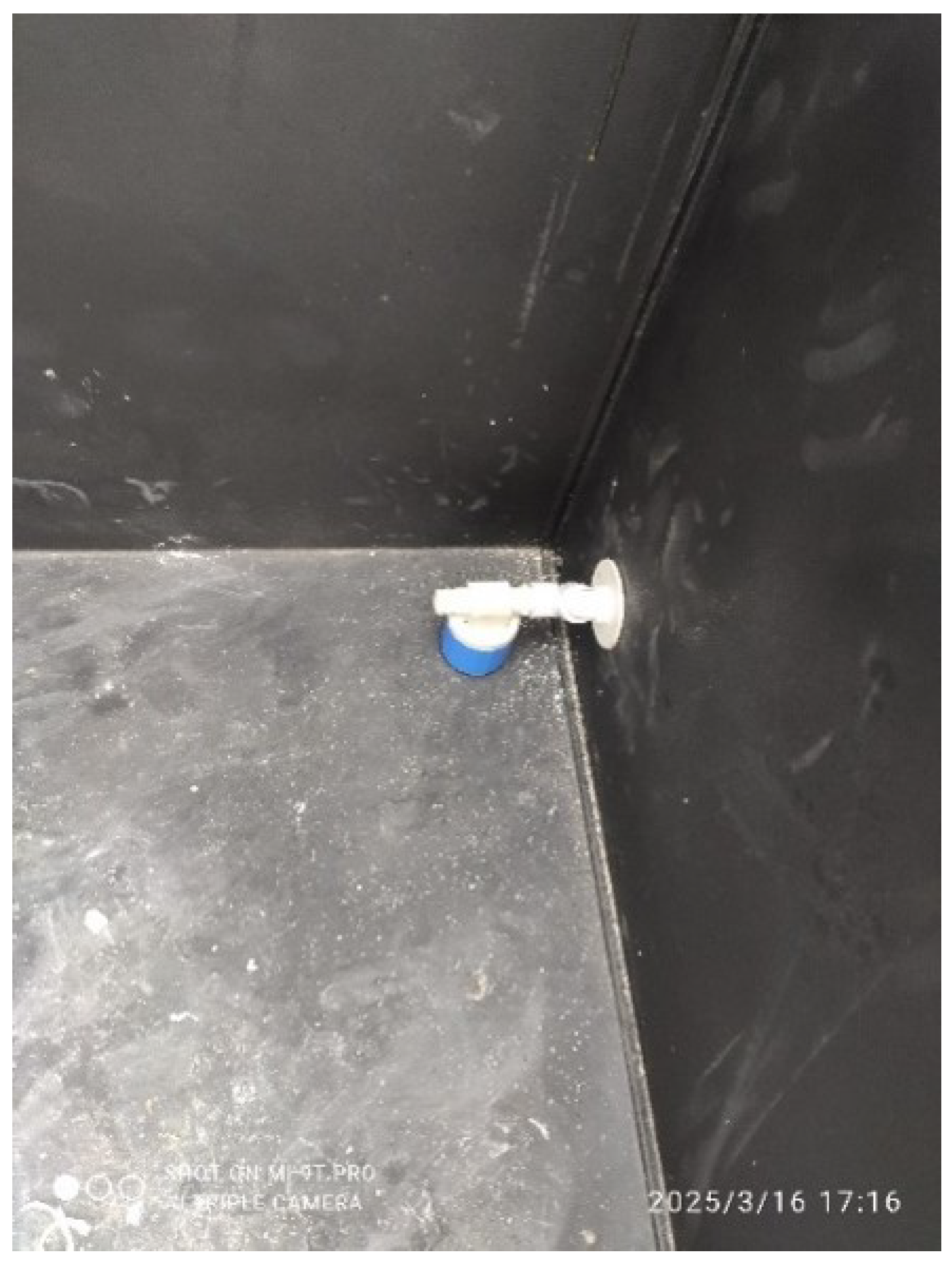 To maintain a stable water depth of 2 cm, identified in the literature as optimal for maximizing evaporation rates while minimizing heat capacity effects, a mechanical float valve was installed (Figure 4). This ensured a constant feed water level despite diurnal evaporation fluctuations. The selected water depth range was further informed by prior sensitivity analyses demonstrating that shallower depths yield higher thermal gradients and productivity [24,28].