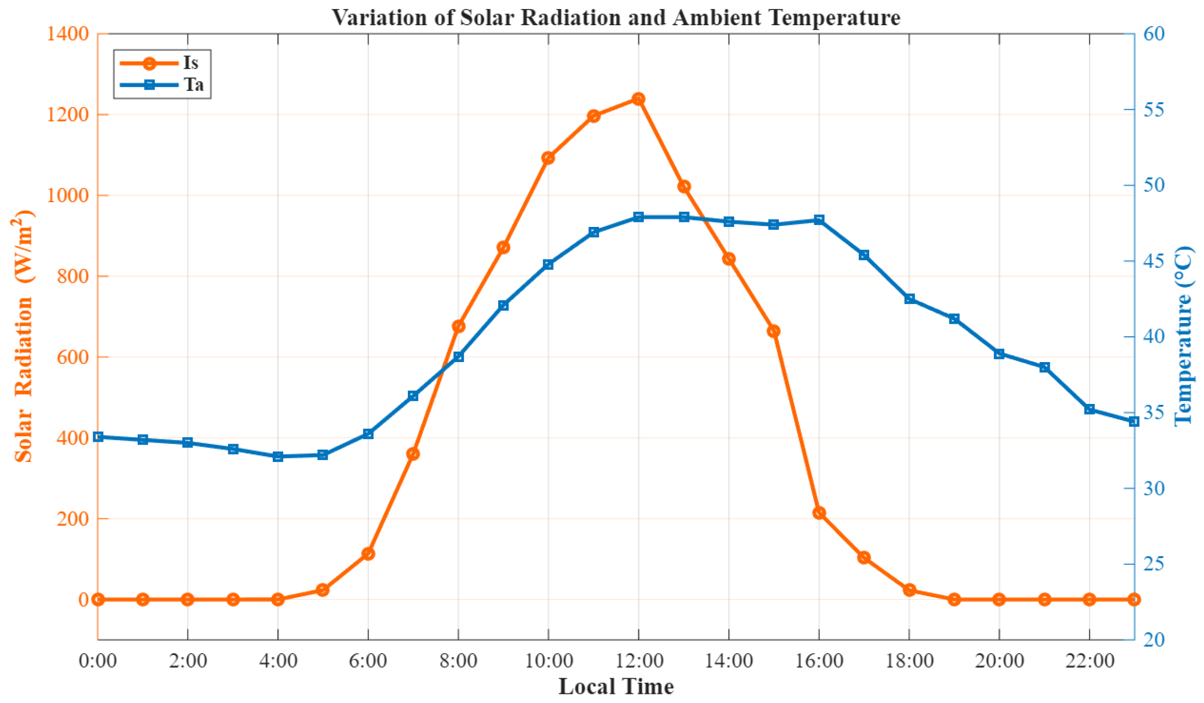 • Figure 11 (Solar radiation): Solar irradiance peaked between 1200 and 1250 W/m2, consistent with clear-sky summer conditions in Basrah.