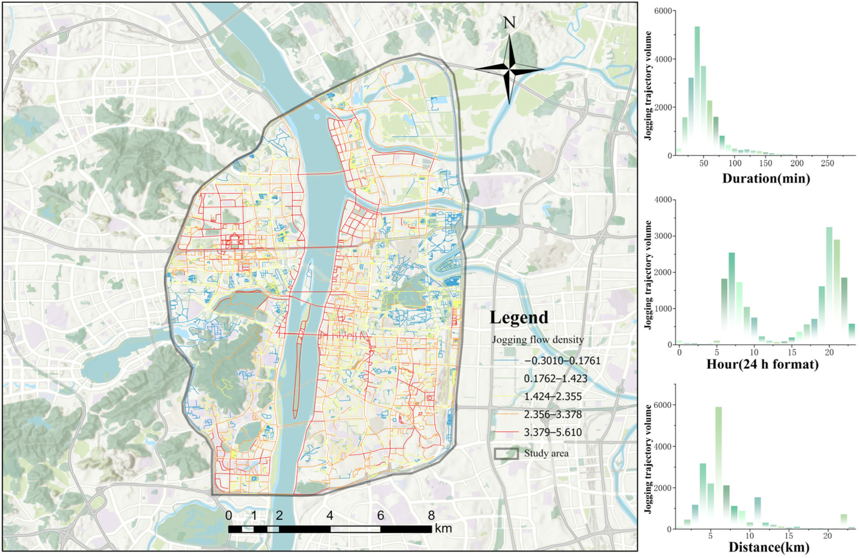 - Tian, Z.; Yang, W.; Zhang, T.; Ai, T.; Wang, Y. Characterizing the Activity Patterns of Outdoor Jogging Using Massive Multi-Aspect Trajectory Data. Comput. Environ. Urban Syst. 2022, 95, 101804. [Google Scholar] [CrossRef]