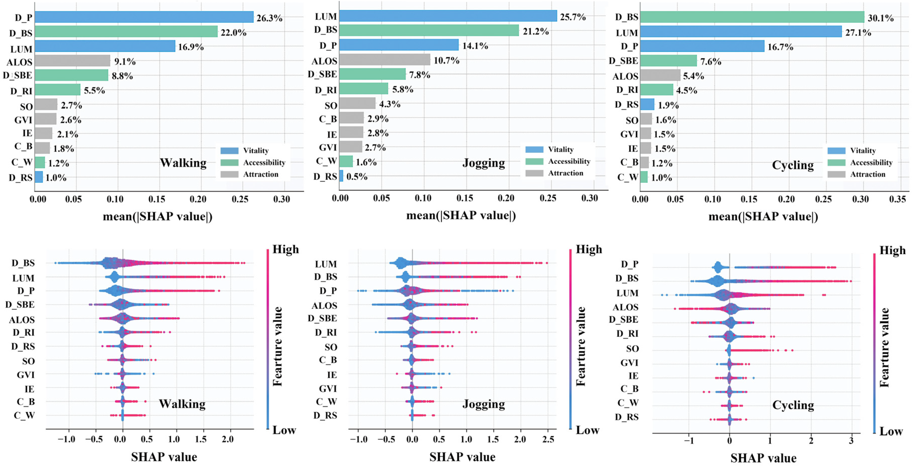 APA StyleXiao, M., Zhong, P., & Liu, R. (2026). Walking, Jogging, and Cycling: What Differs? Explainable Machine Learning Reveals Differential Responses of Outdoor Activities to Built Environment. Sustainability, 18(1), 485. https://doi.org/10.3390/su18010485