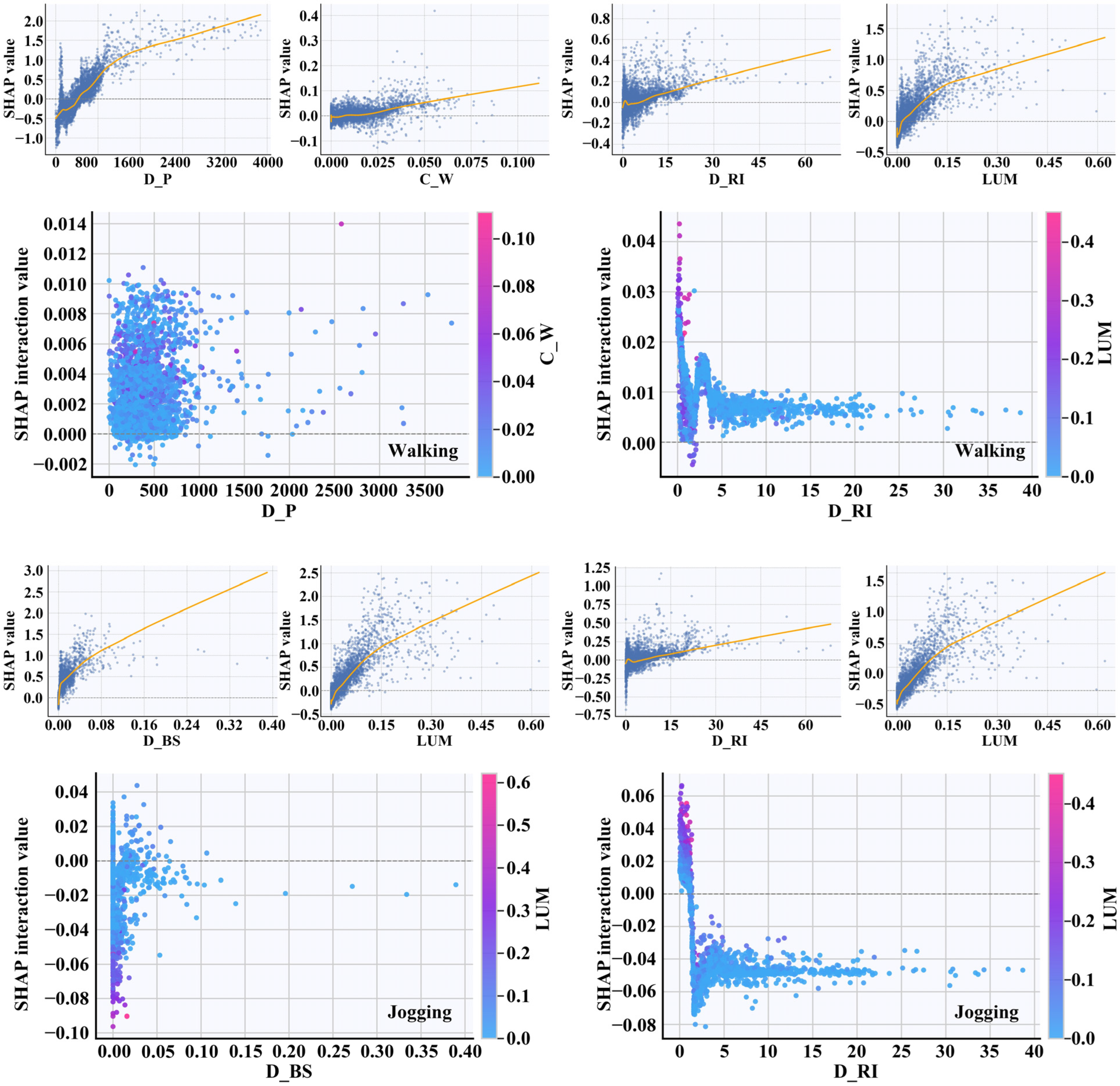 - Yang, W.; Hu, J.; Liu, Y. Association and Interaction between Built Environment and Outdoor Jogging Based on Crowdsourced Geographic Information. Landsc. Archit. 2024, 31, 44–52. [Google Scholar] [CrossRef]