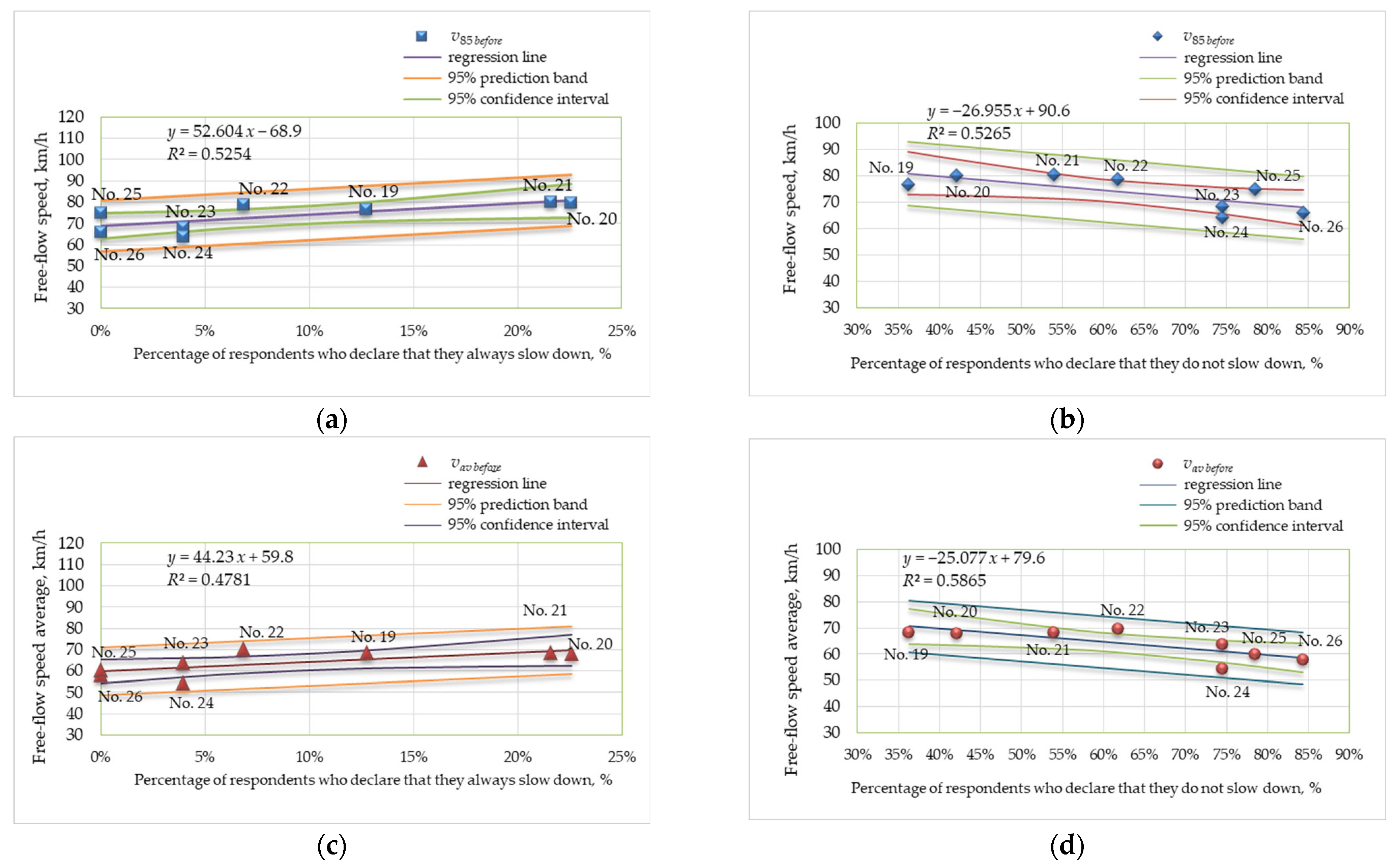 | Study Area | R = f (Percentage of ‘Always Slow Down’ Respondents; v) | R = f (Percentage of ‘Never Slow Down’ Respondents; v) | ||||||