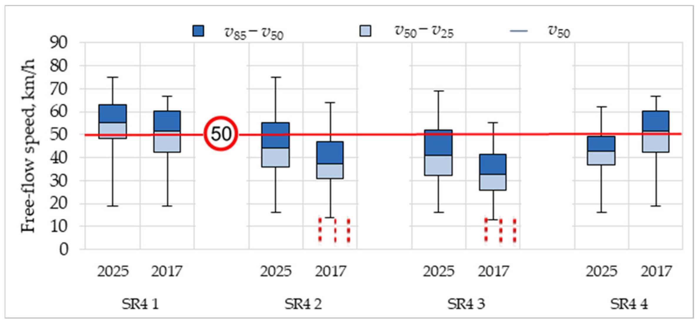 - Sołowczuk, A.; Kacprzak, D. Identification of determinants of the speed-reducing effect of pedestrian refuges in villages Located on a chosen regional road. Symmetry 2019, 11, 597. [Google Scholar] [CrossRef]