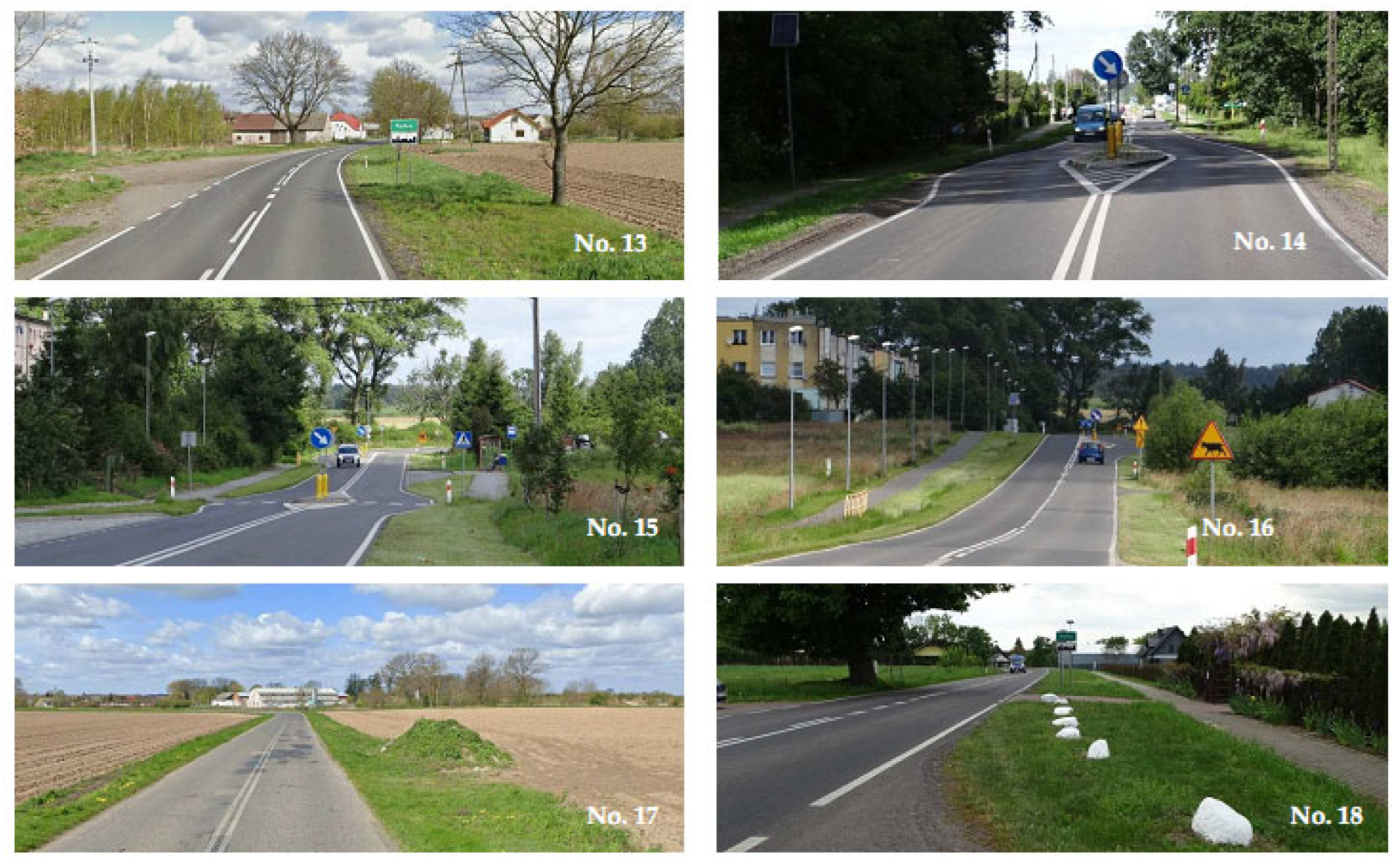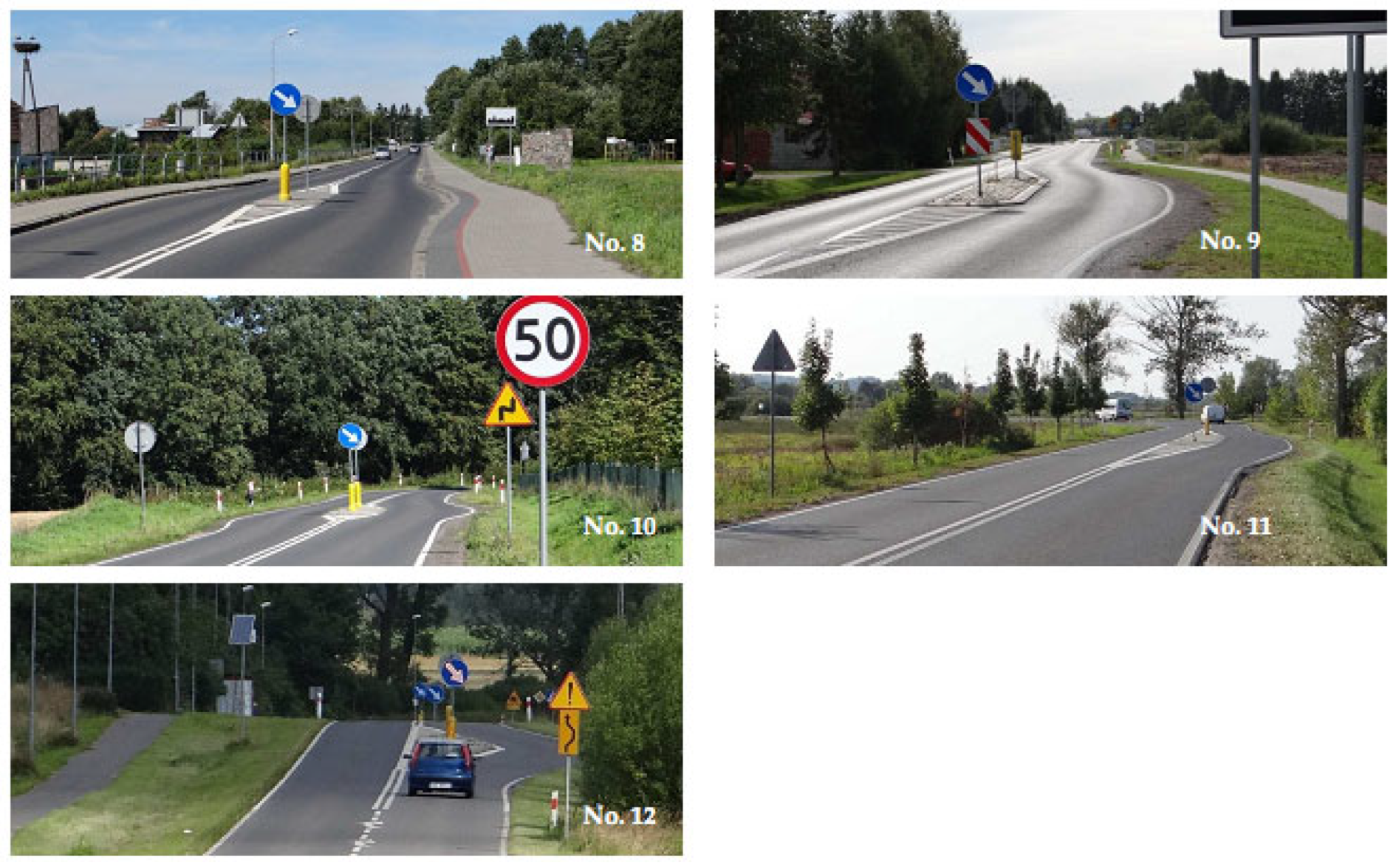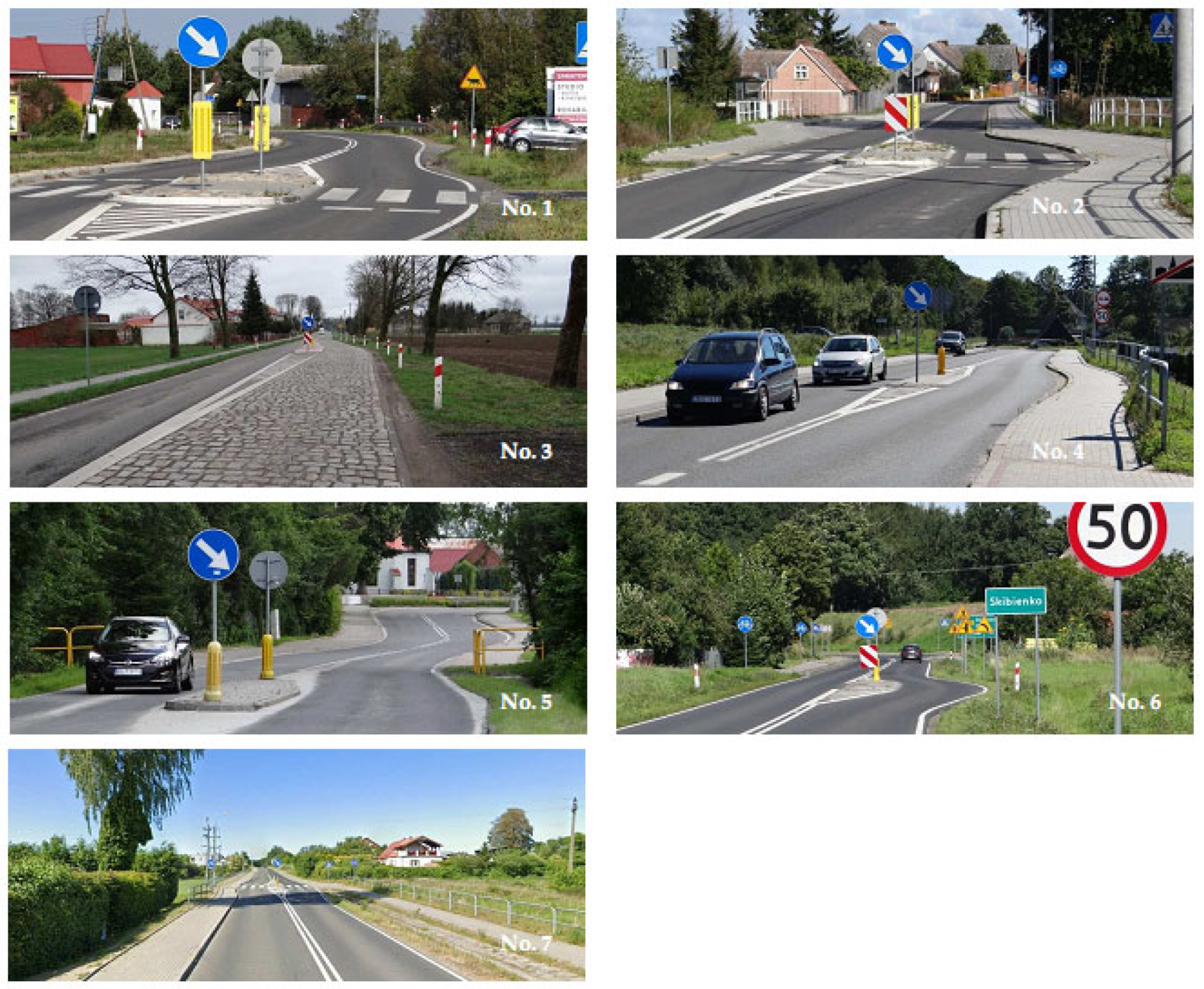 - No. 5—chicane (2 m wide island), located before a very curvy street section, enhanced by culvert guardrails in the driver’s central vision area.