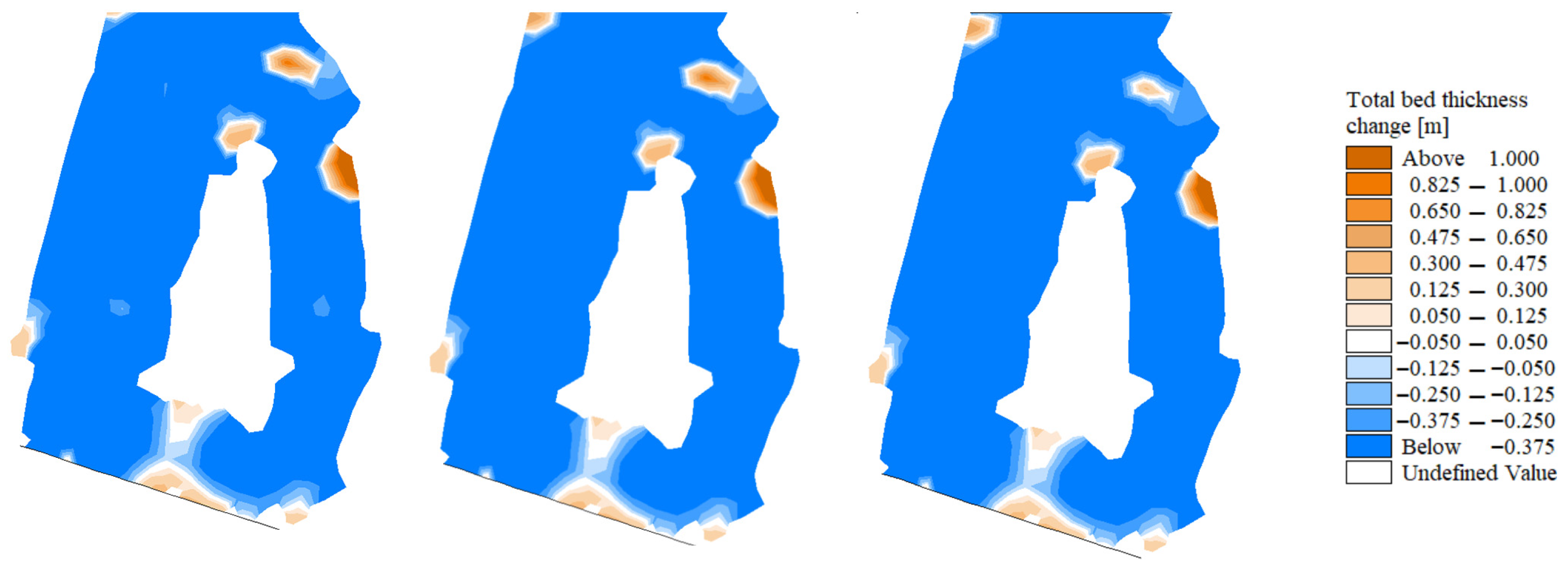 6.5. Scouring and Silting Variations in the Reservoir Area