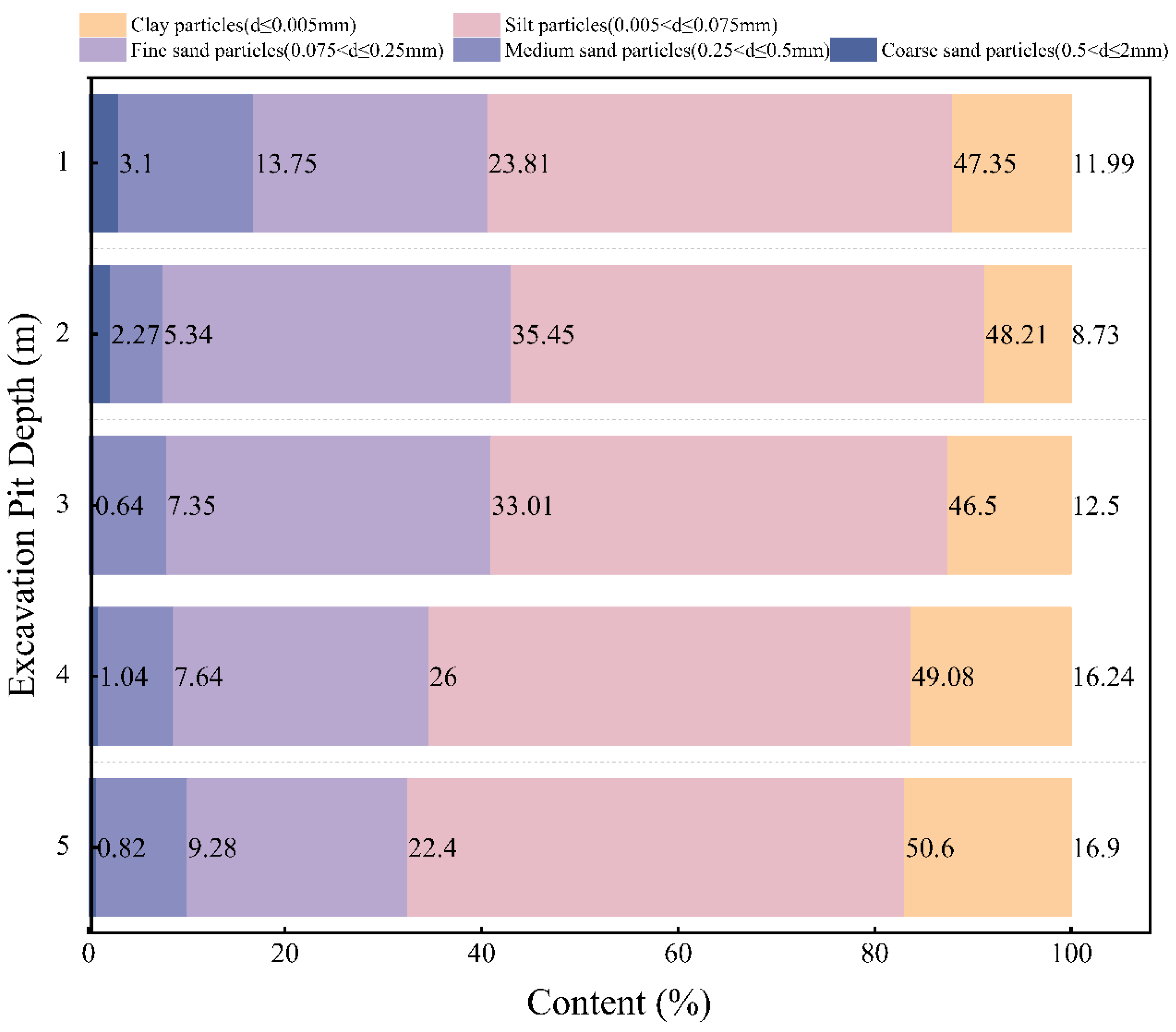 6.1.2. Particle Size Distribution Throughout the Jiahezi Reservoir
