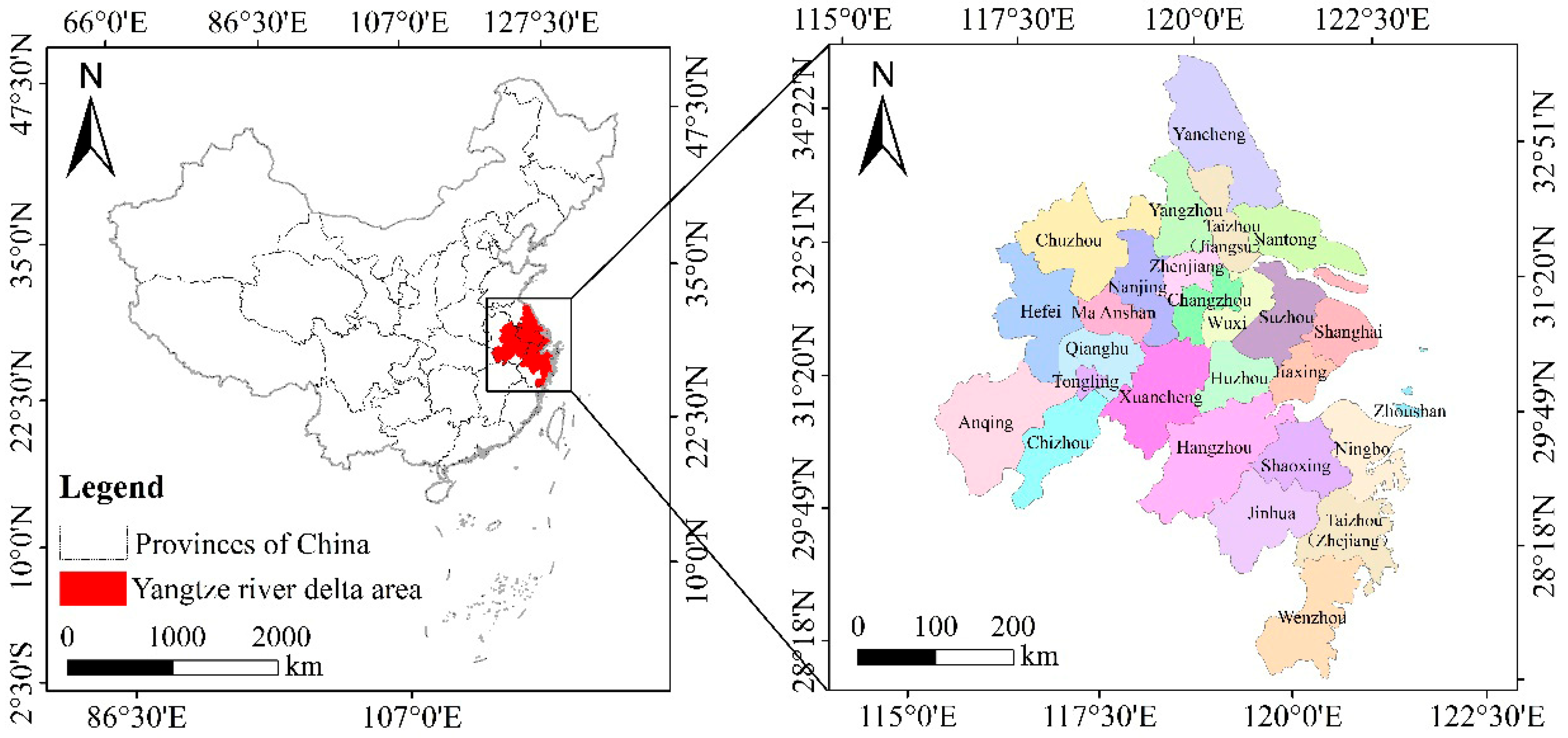 19]. This dual challenge underscores the urgent need for targeted research on carbon emission rights allocation, especially in critical regions like the Yangtze River Delta (YRD). Despite its prominent economic status, the YRD has witnessed a steady uptick in carbon emissions, reflecting a misalignment between economic expansion and environmental sustainability. Addressing carbon emissions in this urban cluster is therefore pivotal to advancing China’s dual environmental and economic goals.