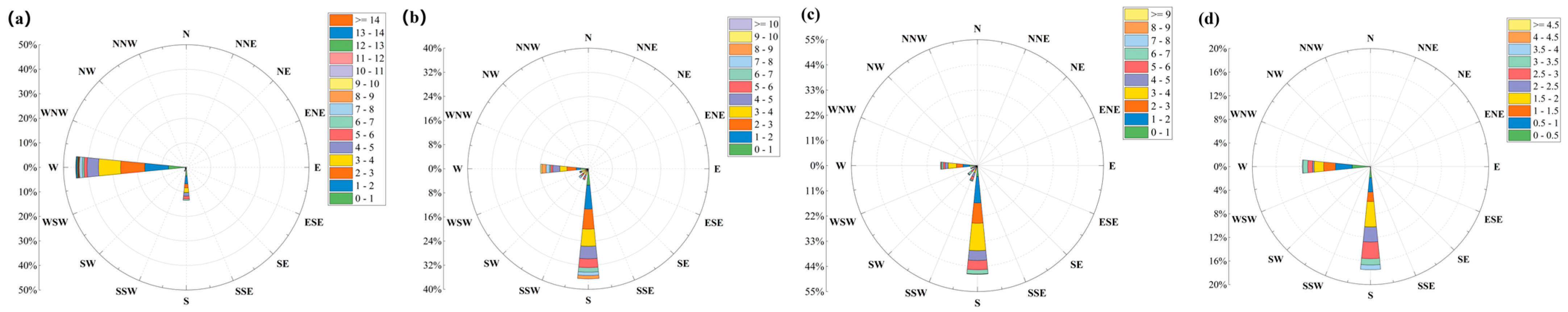 Hefei Seasonal Wind Map Hangzhou Seasonal Wind Map. The four subgraphs (a–d) correspond to winter, spring, summer, and autumn, respectively.