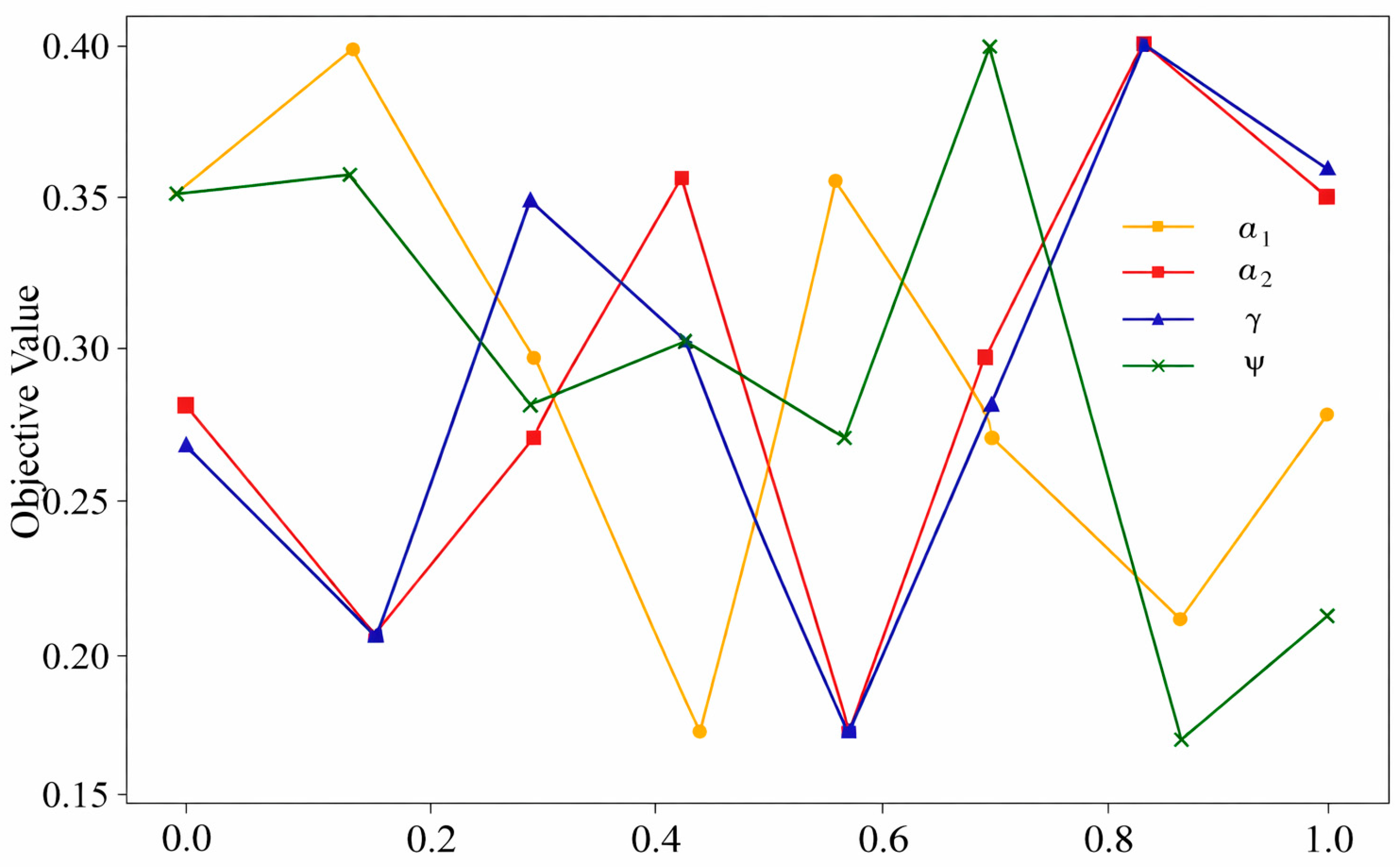 Parameters values vs. objective value.