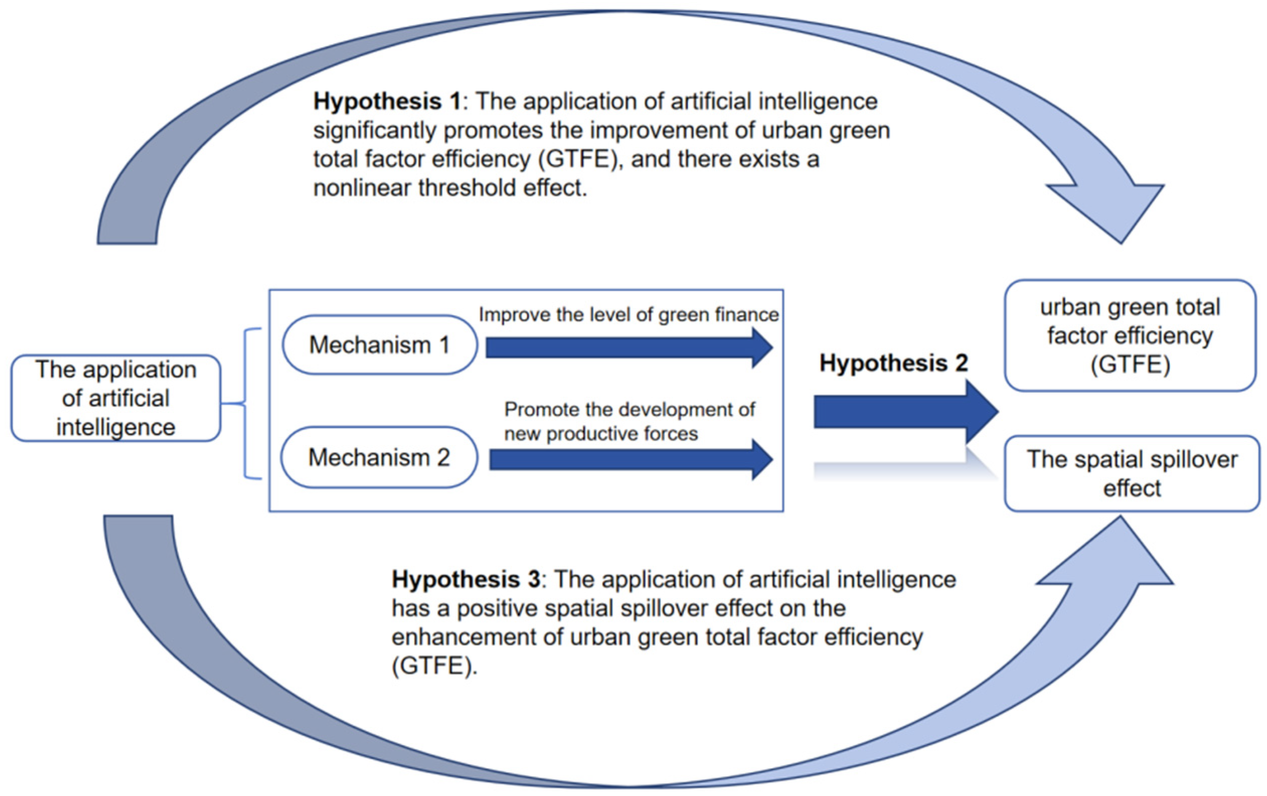 - Kuang, J.; Yang, K.; Shi, X.; Yao, Y. Spatial effect of provincial artificial intelligence development on green total factor productivity. Econ. Geogr. 2024, 44, 144–154. [Google Scholar]
