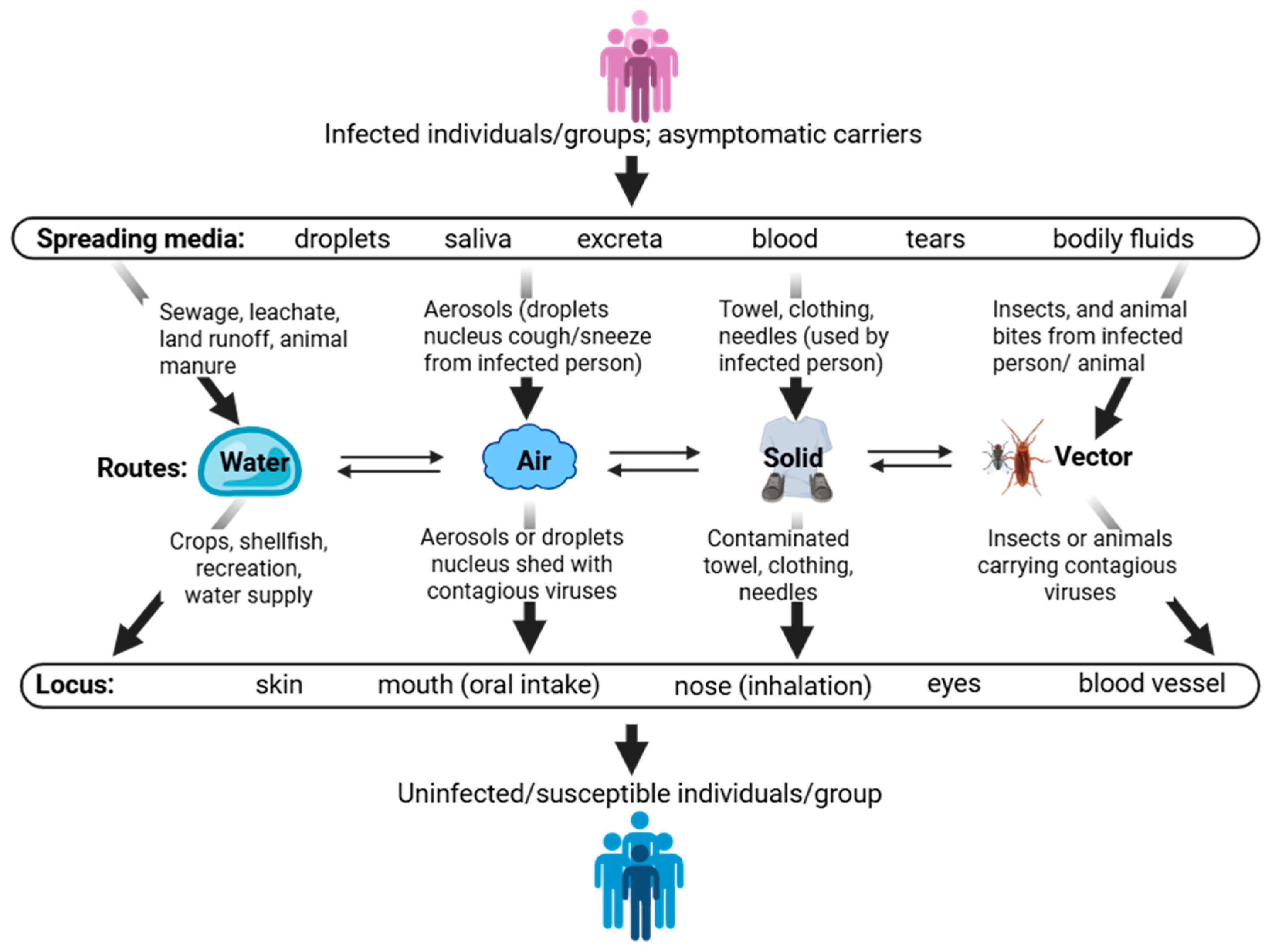 2.3. Comparative Analysis of Viral Particles and Heavy Metals