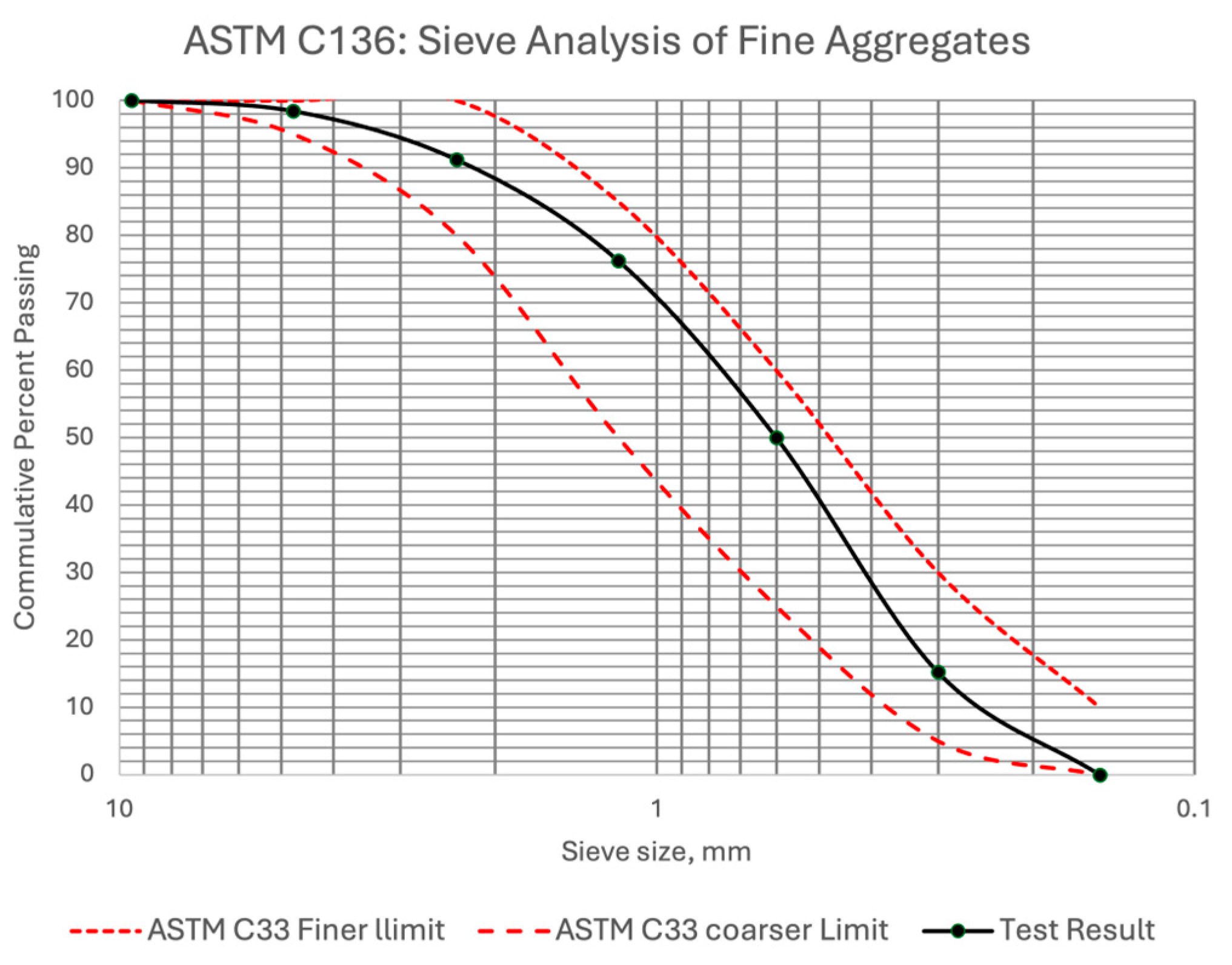 | 1 | Fineness | C204 [70] | 10.5% retained on 90-micron sieve |