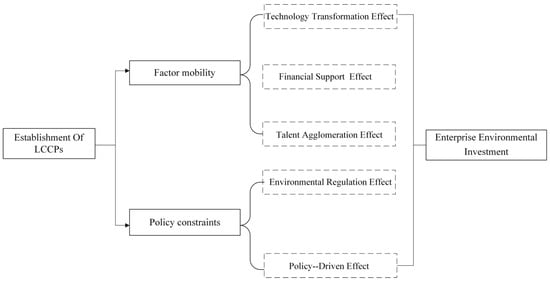 Given the challenges at hand, there is an immediate necessity to identify policy instruments that can effectively encourage corporate environmental investments. Low-carbon policies, which amalgamate institutional pressures with market-based incentives, show substantial potential in instigating change [12]. It is also noted that government attention can enhance the effect of low-carbon city pilot policies on promoting green total factor productivity, implying that the intensity of policy implementation significantly affects the policy outcomes [13]. Nevertheless, research on how LCCPs affect firms’ environmental investment remains underexplored. Therefore, this study considers the implementation of LCCPs as a quasi-natural experiment and applies a difference-in-differences (DID) design. Our findings reveal that LCCPs significantly raise environmental protection investments. Results show that LCCPs significantly raise environmental protection investments. This paper analyzes the mechanism behind this enhancement from both theoretical and empirical perspectives.