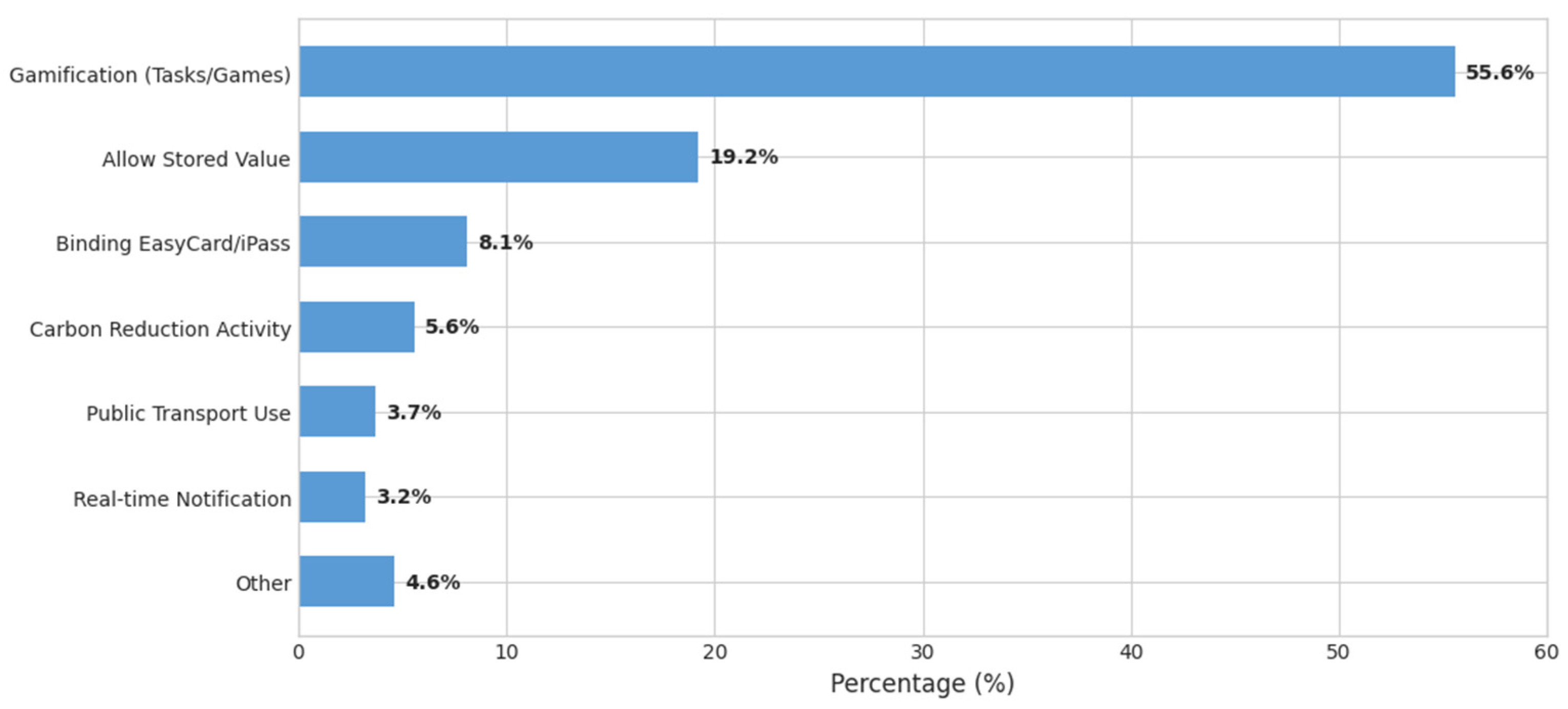 - Largest discrepancies: Following the above, the largest discrepancies, in descending order, were found in the number of affiliated merchants for digital city tokens or coupons, preferential merchant information search, proactive notification of promotional event information, and preferential merchant information. This suggests that users highly value the quantity and information regarding preferential merchants but feel insufficiently satisfied, possibly due to an inadequate number or variety of merchants, or inconvenient provision/searching of merchant information.