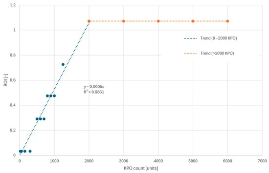 The analysis covered an annual number of KPOs in the range of 0–6000, enabling the assessment of the ROI indicator for enterprises of different sizes—from small entities to large construction and demolition companies. The sensitivity analysis was deterministic in nature and was aimed at identifying scale effects rather than modelling probabilistic uncertainty.