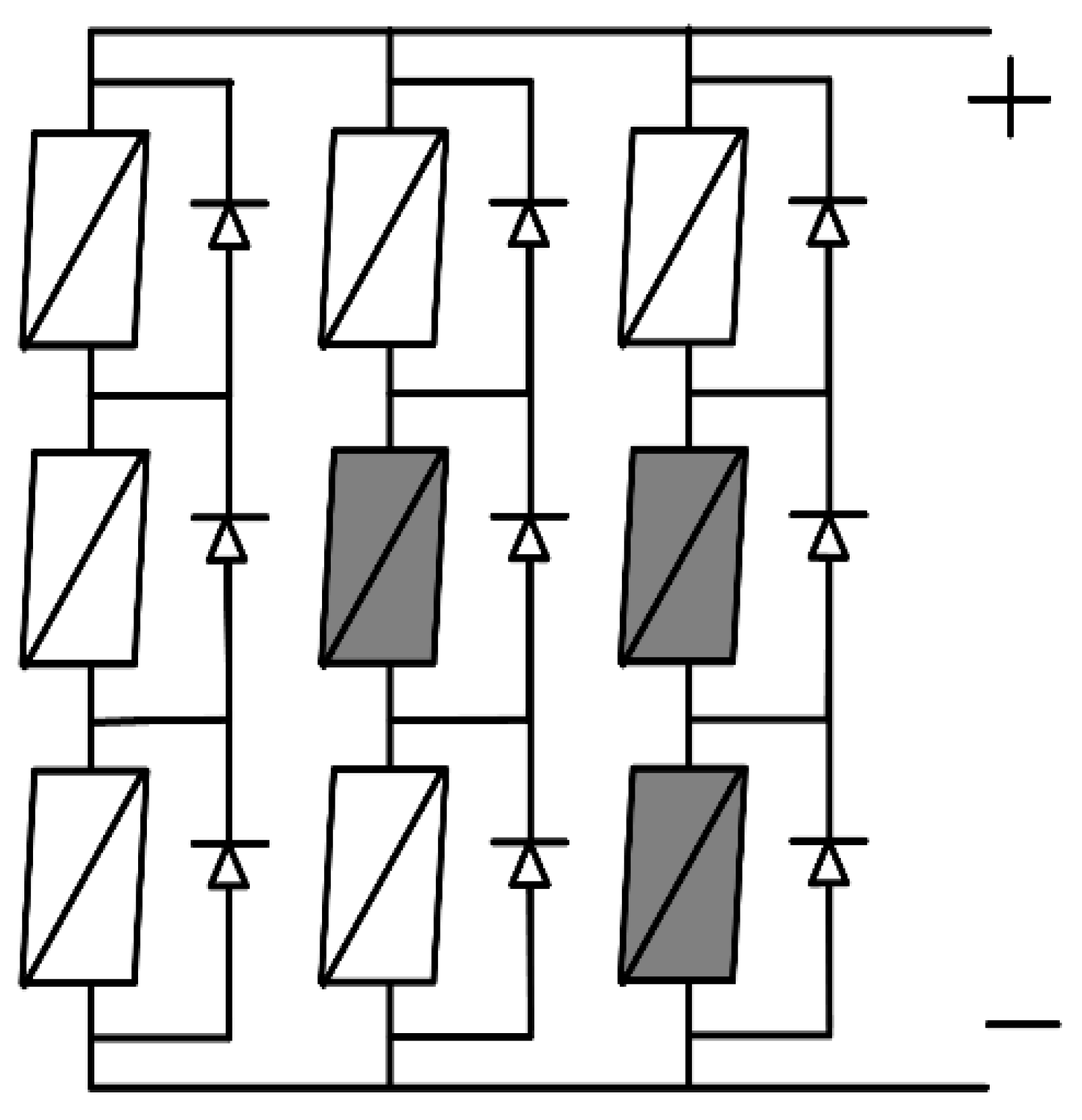 Figure 14. The upper, middle, and lower PV groups are assumed to receive irradiance values corresponding to those listed in