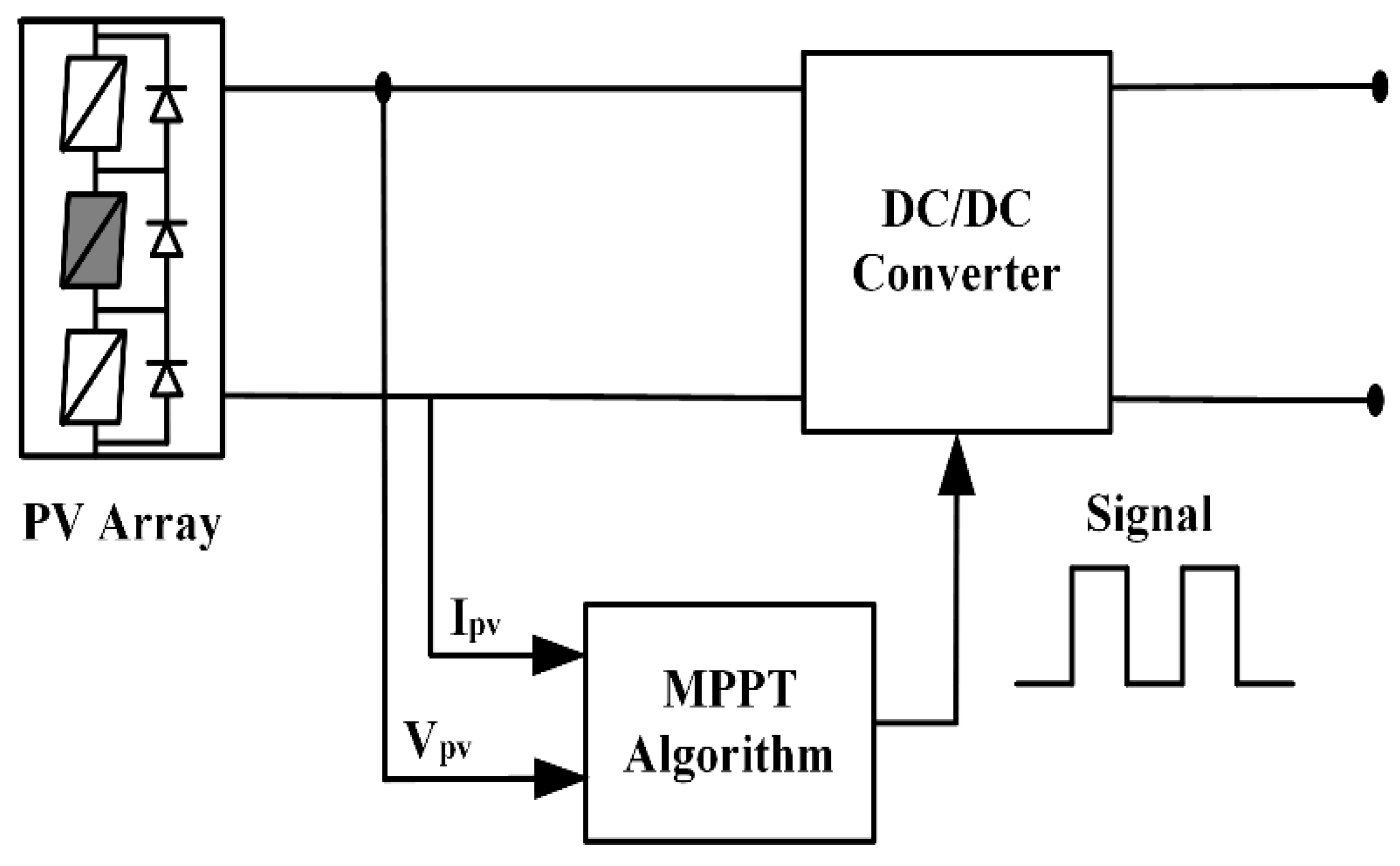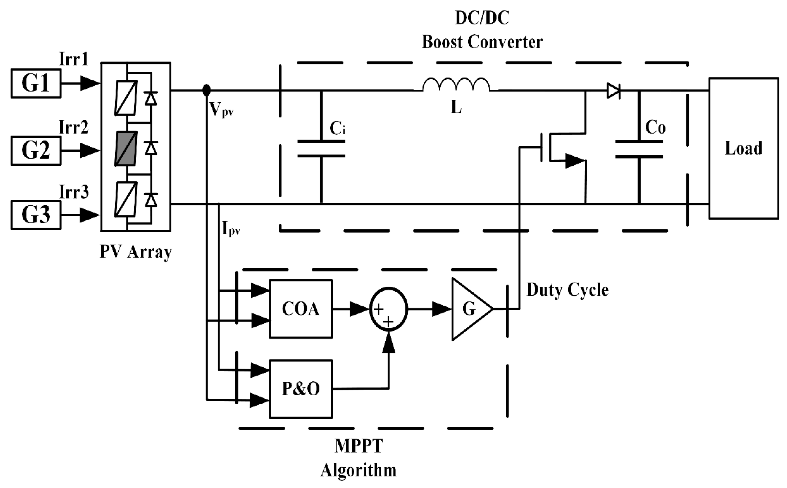 The PV system model consists of a PV array connected to the load through a DC–DC converter. The schematic diagram of the proposed configuration is shown in