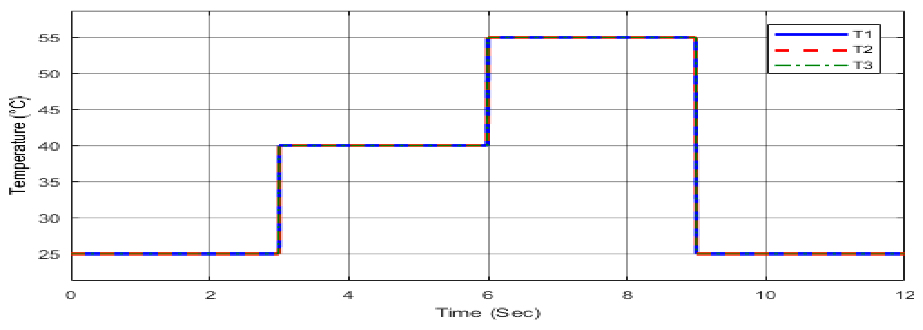 Figure 12. In this configuration, the temperatures of the upper, middle, and lower PV groups are represented as T1, T2, and T3, respectively, as explained in the system model in