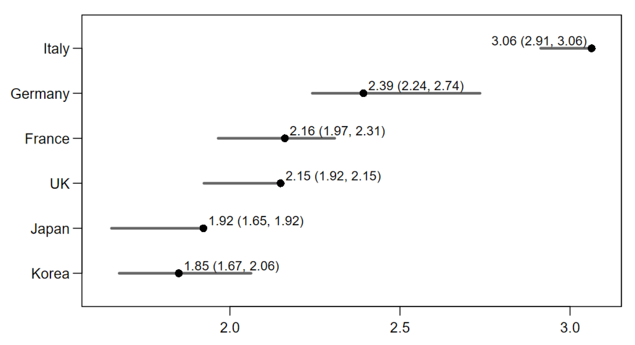 | Korea (KOR) | 0.83 | 1.33 | 1.18 | 1.00 | 1.58 | 1.51 | 1.59 | 1.93 | 0.81 | |