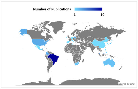 Figure 4 shows the distribution of the forty published articles included in the geographical map. Brazil emerged as the leading contributor to the field of HRGS, with ten publications, representing the largest share of studies identified. Malaysia followed with four publications, while Colombia, USA, and Poland accounted for three. Moderate research studies were observed in Australia, Japan, and South Africa, each with two publications. In contrast, a range of countries, including Germany, Mexico, Ireland, Tunisia, Spain, China, South Korea, Italy, the Philippines, Portugal, and Trinidad and Tobago, each conducted a single publication. This distribution highlights Brazil’s prominent role in advancing HRGS research and underscores the growing global interest in this domain, spanning both development and developing countries.