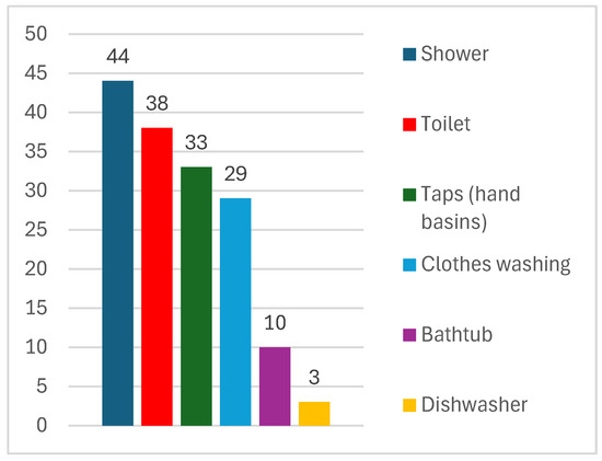 These high-consumption end-uses present considerable opportunities for substituting potable water with alternative sources, particularly through the implementation of RWH and GWR systems. By addressing these non-potable needs, decentralized RWH and GWR solutions can significantly reduce dependence on municipal water supplies and contribute to improved water-use efficiency in urban buildings [20,61].