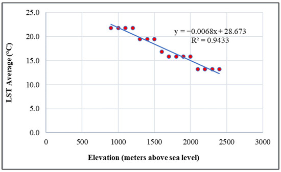 Figure 6. Scatter plot of elevation’s impact on LST.
