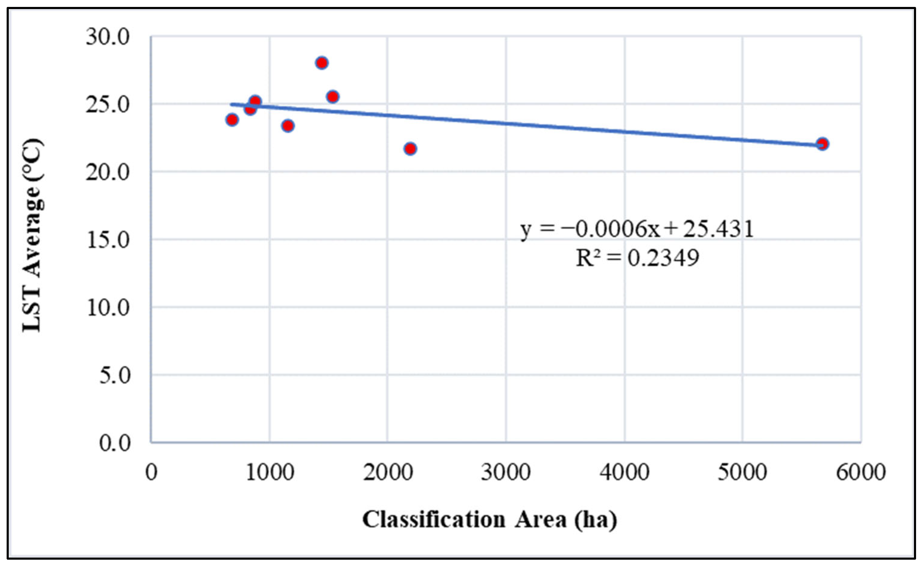 Figure 7. Scatter plot of LULC classification’s impact on LST.