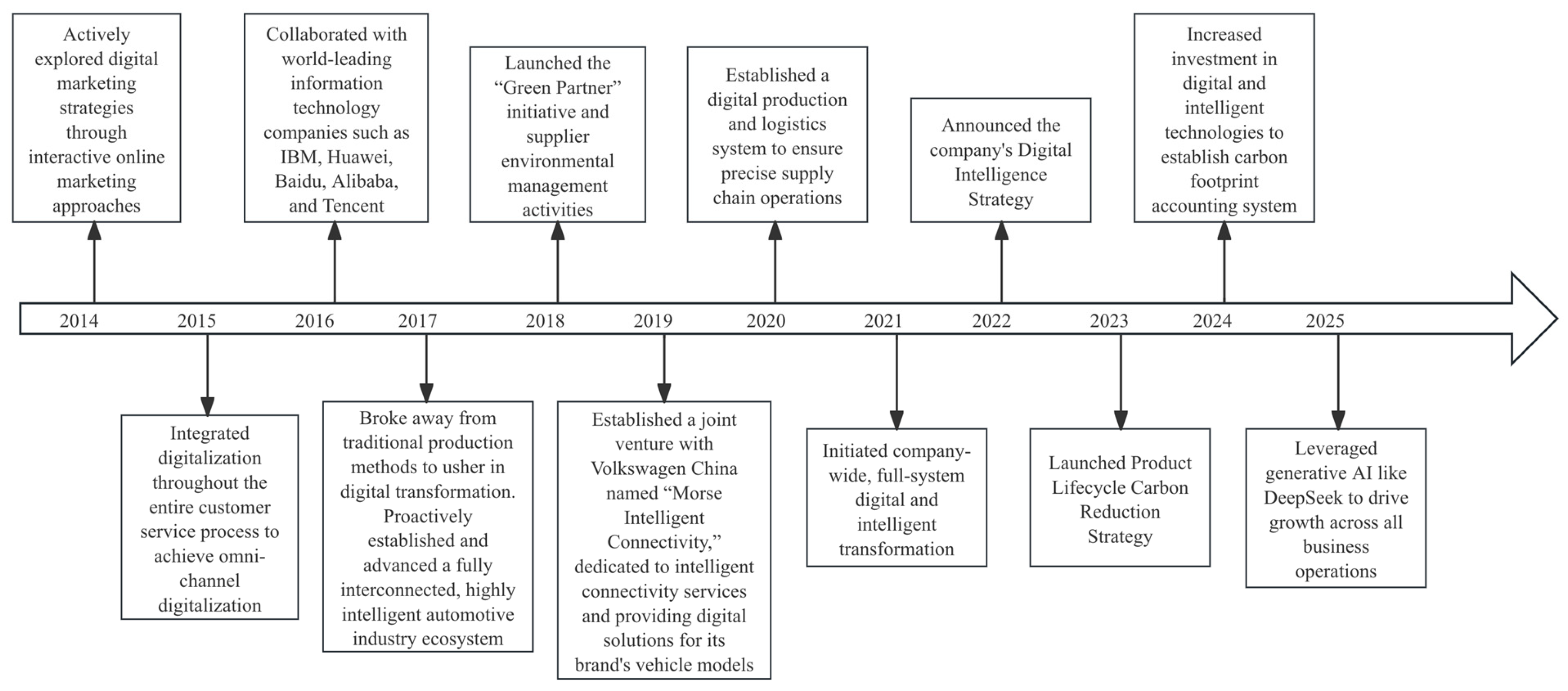 | Borrowing from “External Resources” | Embedding GAI into Multi-Scenario Applications | “In the automotive R&D process, the introduction of large models such as DeepSeek and other AI toolchains has enabled breakthroughs in product development technology and enhanced efficiency.” (B2) | |