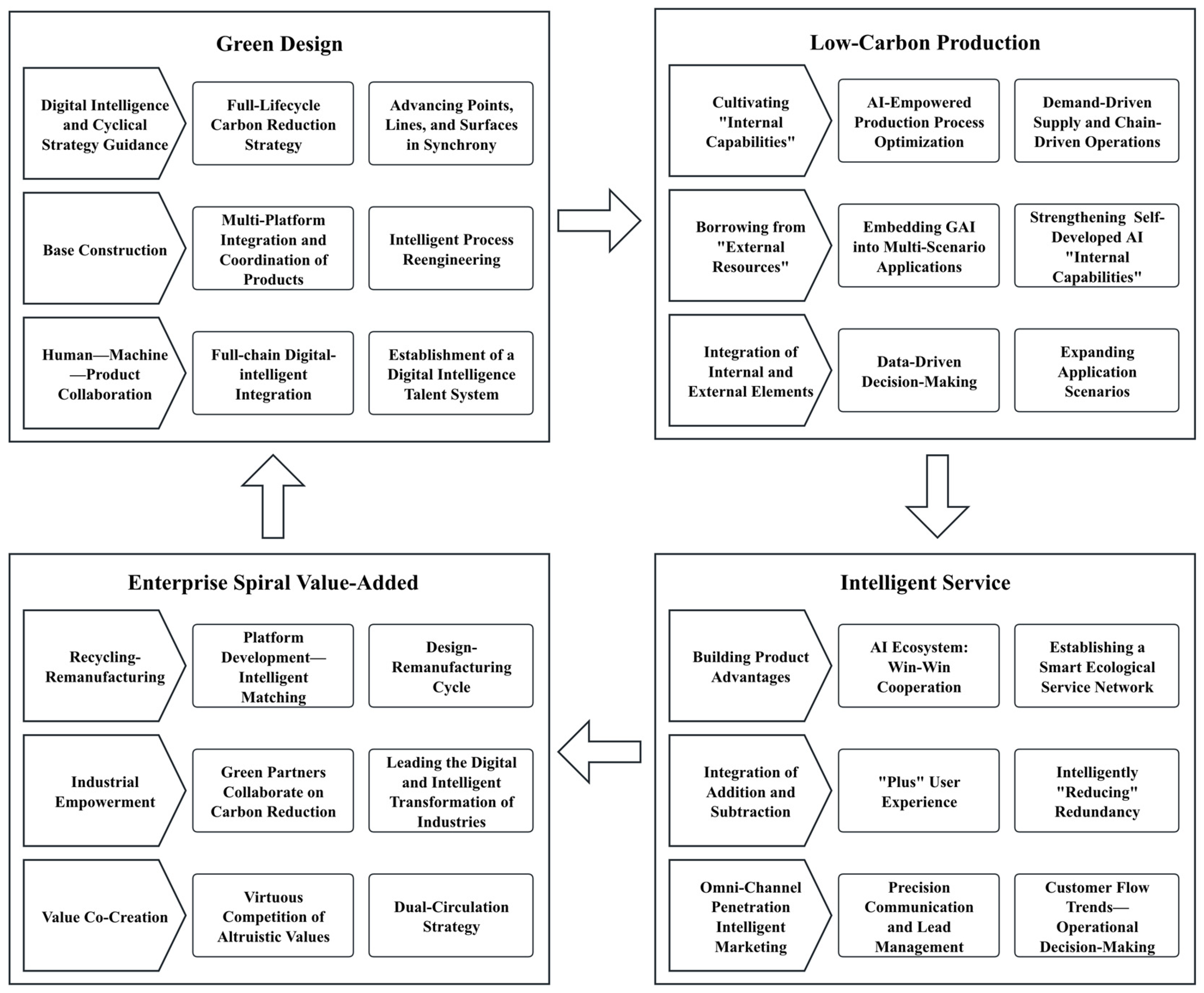 | Low-Carbon Production | Cultivating “Internal Capabilities” | AI-Empowered Production Process Optimization | “After implementing artificial intelligence technologies such as image recognition in our production workshops, we have significantly optimized our manufacturing processes. This has led to substantial improvements in product quality, production efficiency, and reliability.” (A3) |