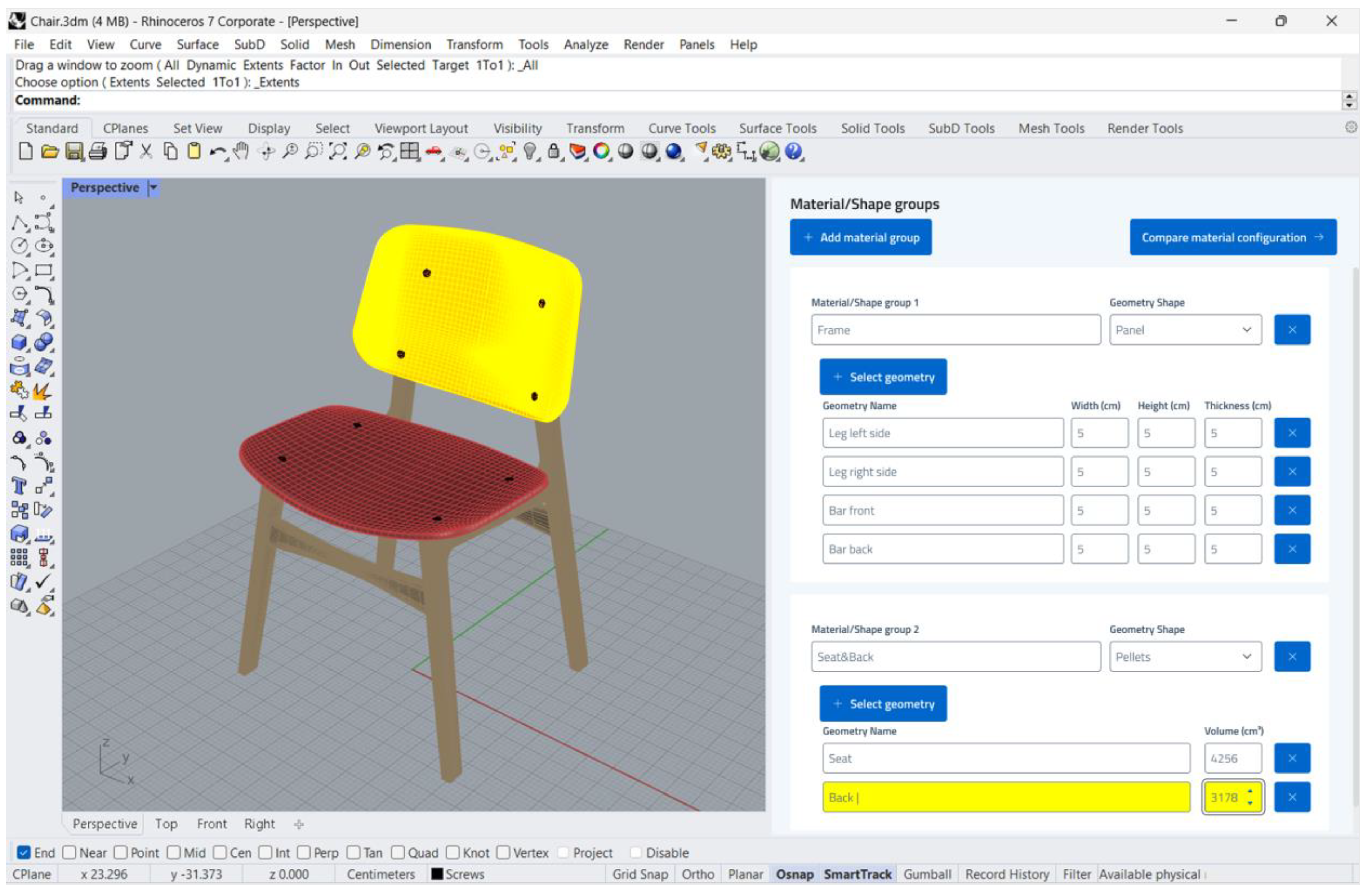 According to this scenario, the new tool therefore systemises several features of the platforms examined in the benchmarking phase in order to develop a specific tool for designers in the Made-in-Italy furniture sector to simultaneously offer them information on circular materials on different levels: availability, market, performance, and technical and environmental (with certifications to be highlighted, if present). The platform has been designed to enable the establishment of a direct relationship between manufacturers and designers through an online marketplace (for the sale of bio-based materials, semi-finished products, by-products, dead stock, and reclaimed and recycled materials) directly connected to a plug-in for 3D modelling software. The plug-in provides designers with real-time information on the circularity of their furniture projects, also with the support of AI technologies (