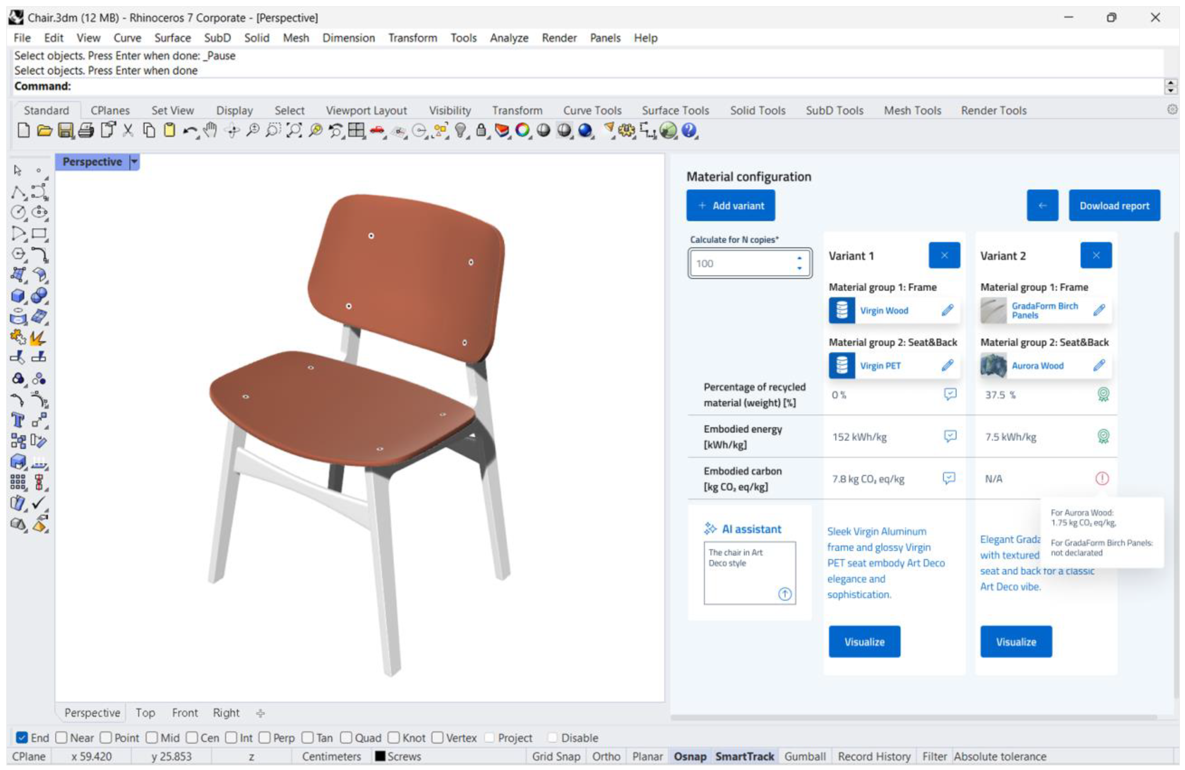 While there is a regulatory push requiring furniture producers to meet certain environmental standards in order to be eligible for public procurement, and there are various enterprises and tools specialized in helping manufacturers achieve circular production, the necessary time and effort is still challenging, especially in the case of small-scale productions or tailor-made interior design projects, where investing years in R&D is often not feasible. The research starts from the hypothesis that R&D for sustainable furniture development might be significantly improved with better digital tools, particularly if the contemporary possibilities of AI-driven data processing and generative AI capabilities are appropriately used for compensating human limitations.