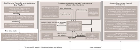 This study addresses a critical gap in both theory and practice: the lack of an operational, design-led framework that effectively integrates community agency, collaborative design processes, and strategic urban-rural synergy for the regenerative transformation of living heritage. While community participation and adaptive reuse are widely advocated, robust methodologies to quantify their efficacy and link them to holistic socio-ecological outcomes are scarce [18,19]. Similarly, discussions on urban-rural coordination often lack concrete mechanisms to leverage cultural heritage as a strategic platform for reciprocal exchange [20].