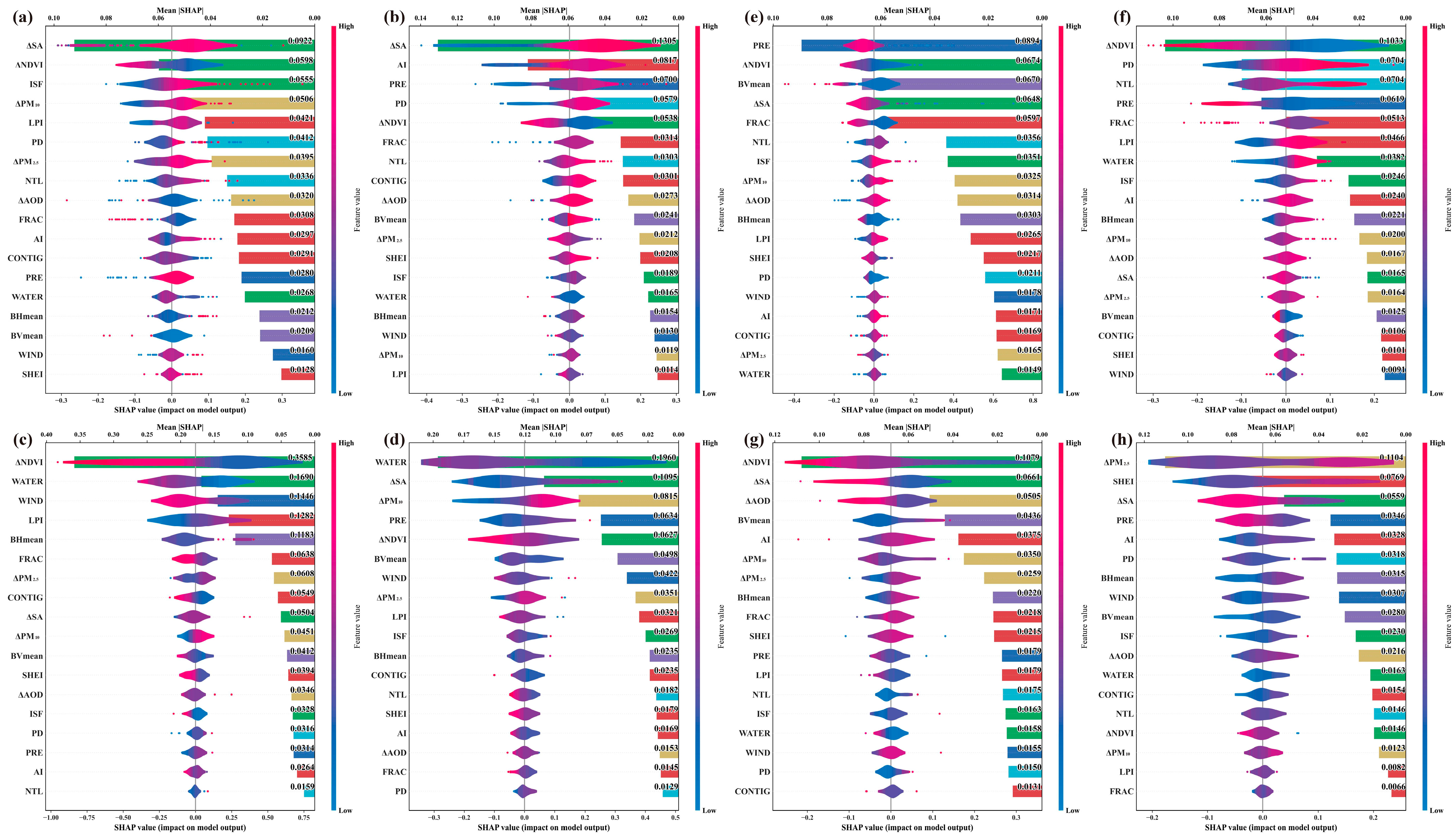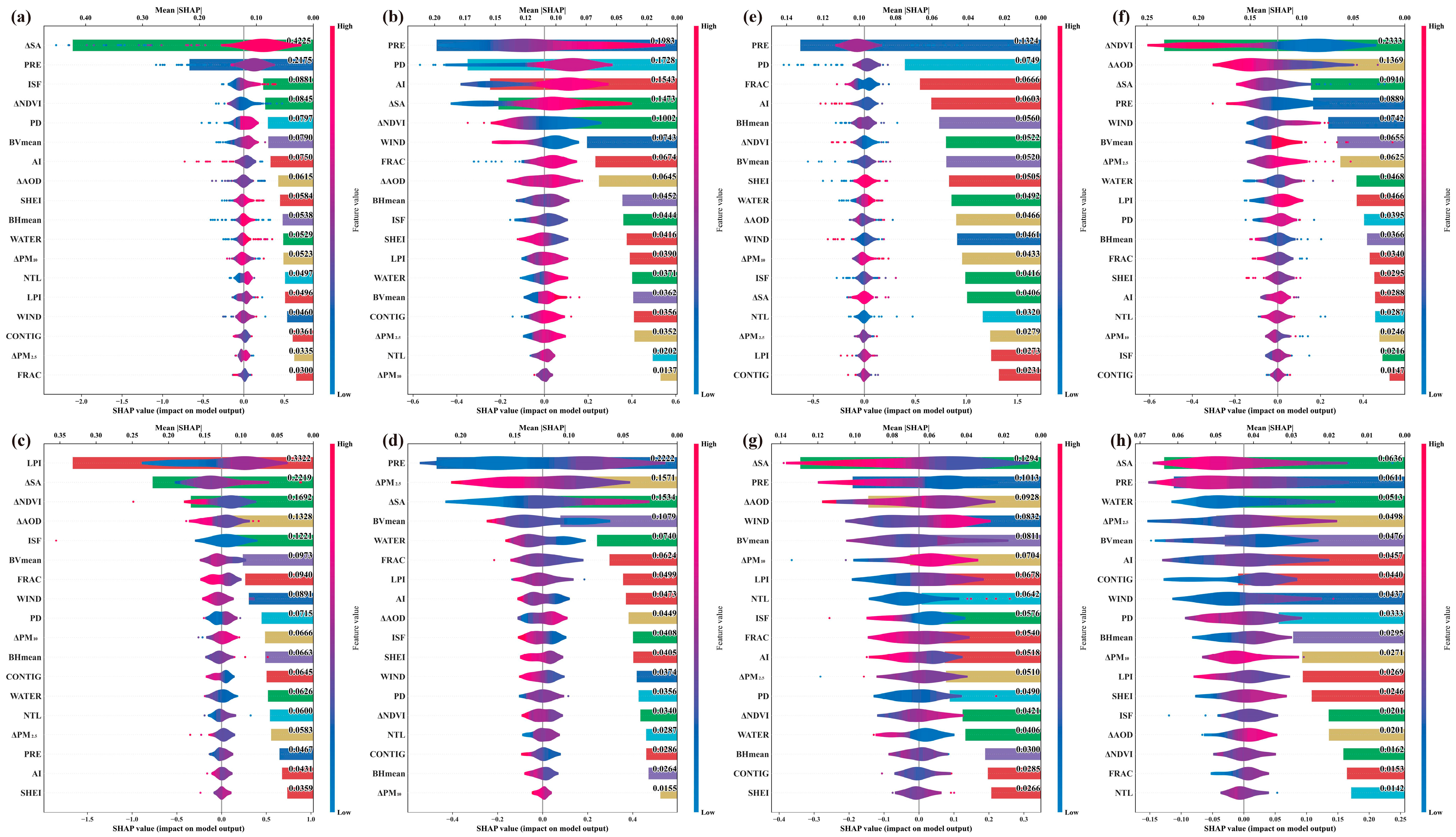 - Hong, T.; Yim, S.H.L.; Heo, Y. Interpreting complex relationships between urban and meteorological factors and street-level urban heat islands: Application of random forest and SHAP method. Sustain. Cities Soc. 2025, 126, 106353. [Google Scholar] [CrossRef]