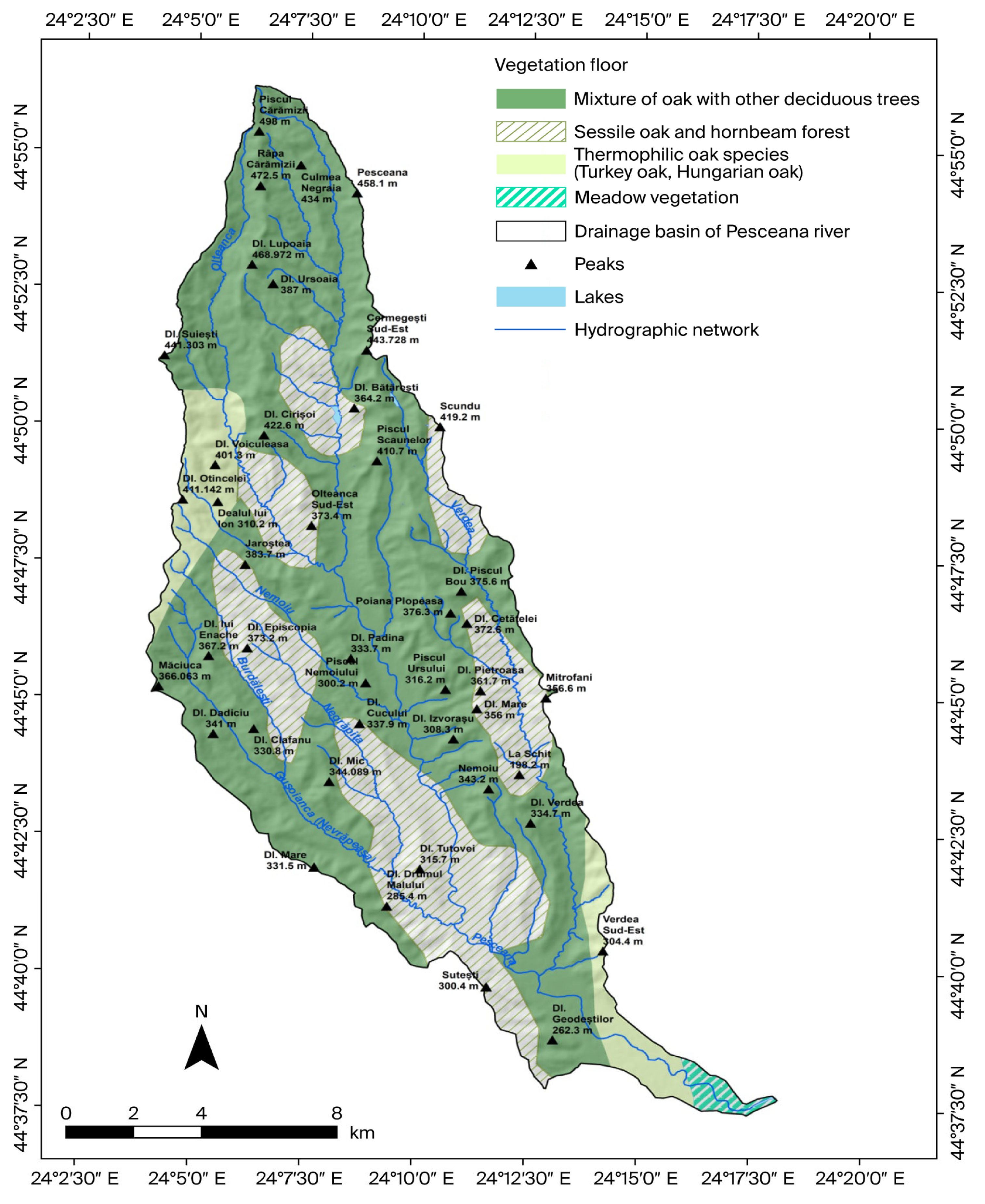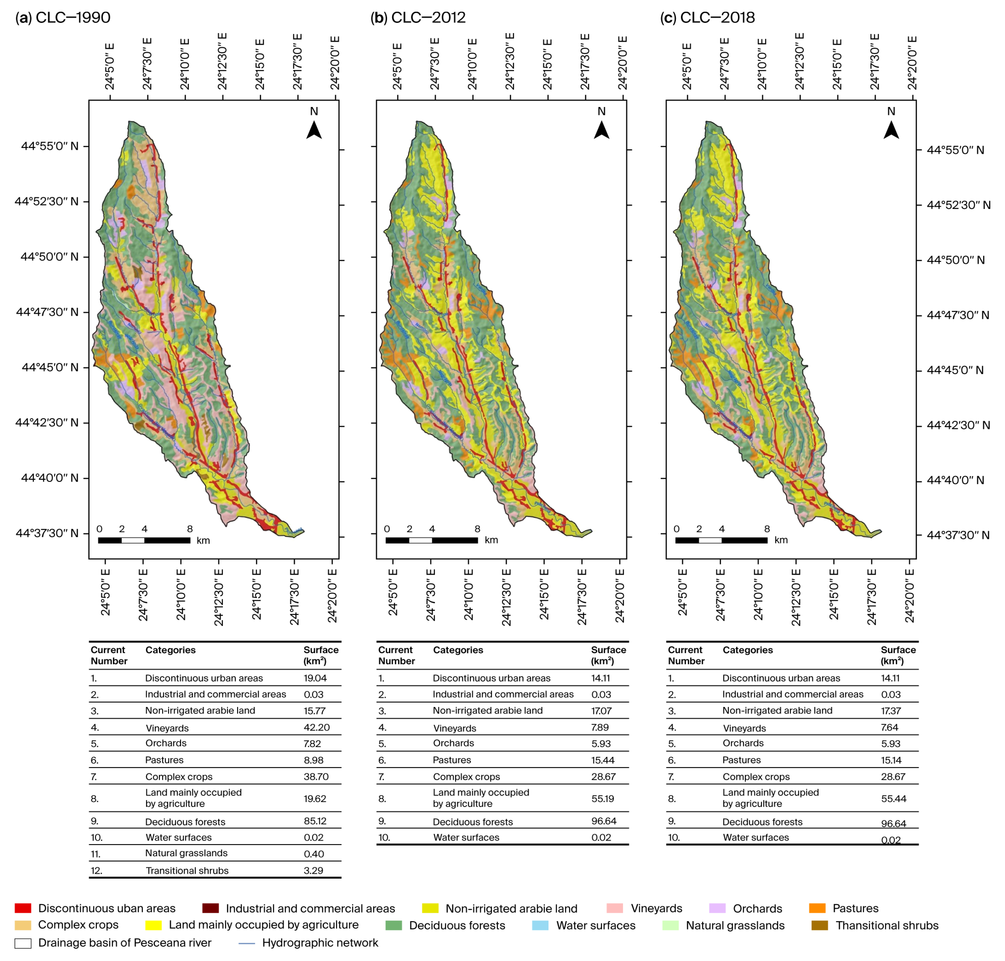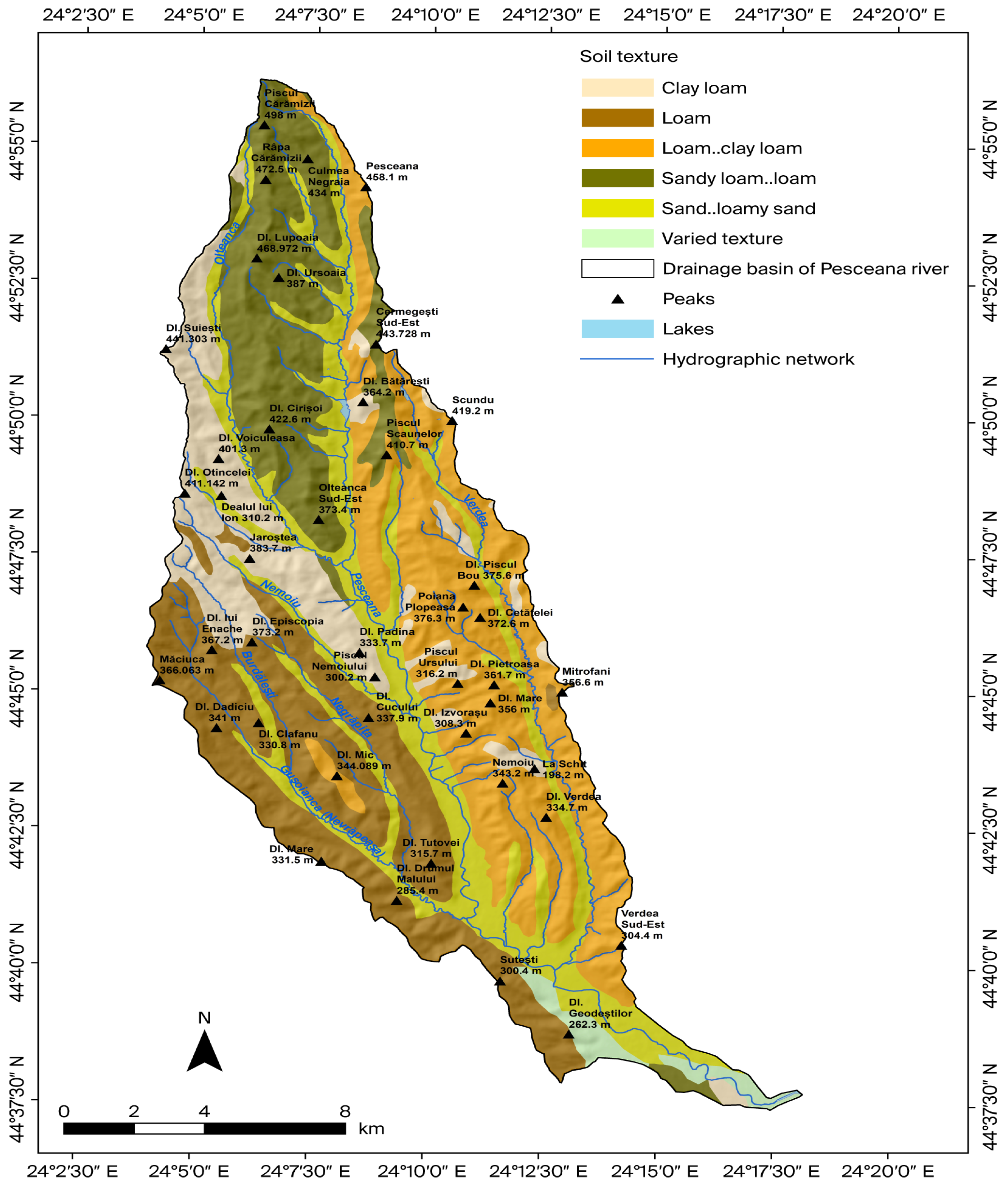 3.1. Land-Use Distribution in the Pesceana River Basin