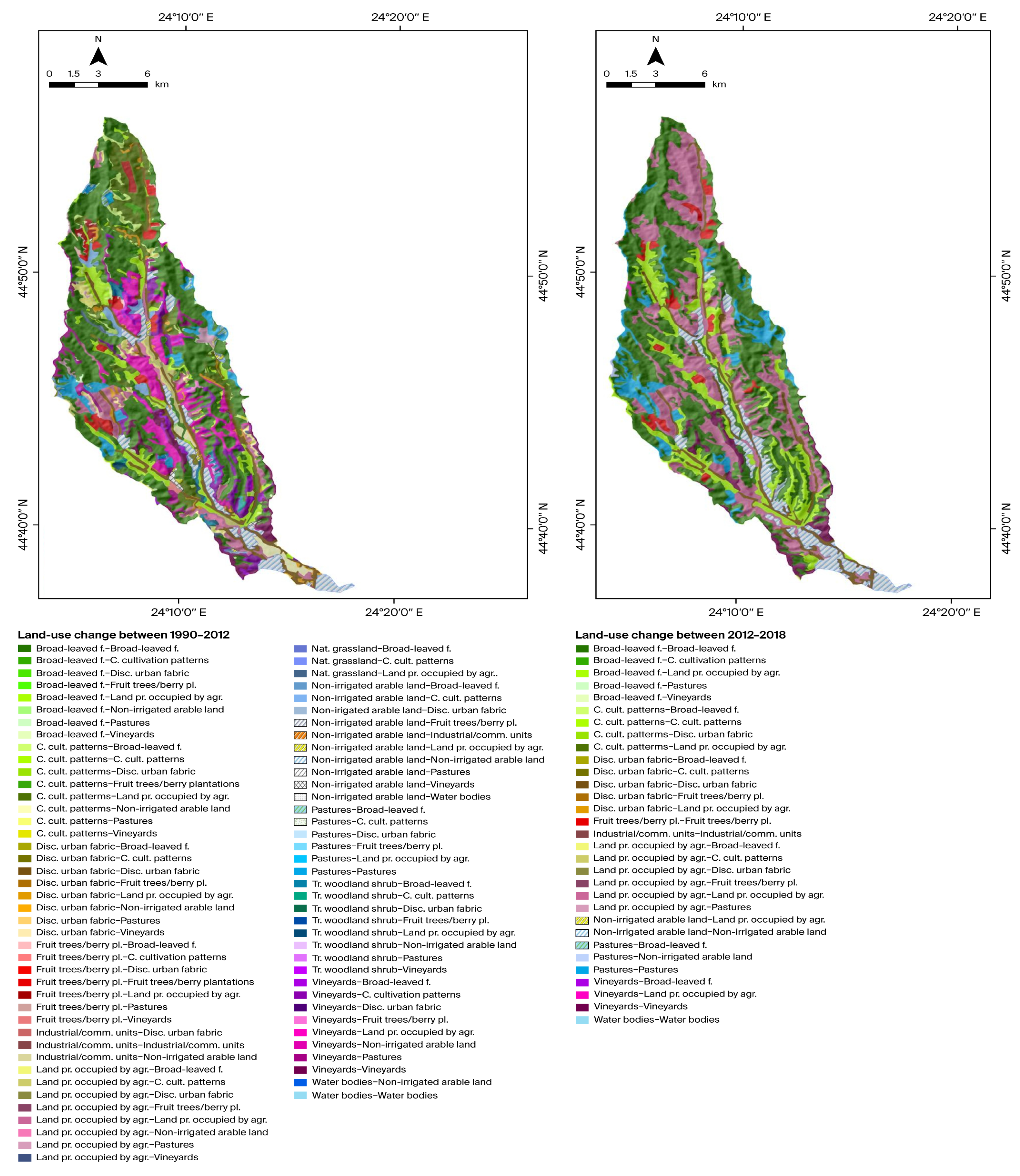 - Karamesouti, M.; Detsis, V.; Kounalaki, A.; Vasiliou, P.; Salvati, L.; Kosmas, C. Land-use and land degradation processes affecting soil resources: Evidence from a traditional Mediterranean cropland (Greece). Catena 2015, 132, 45–55. [Google Scholar] [CrossRef]